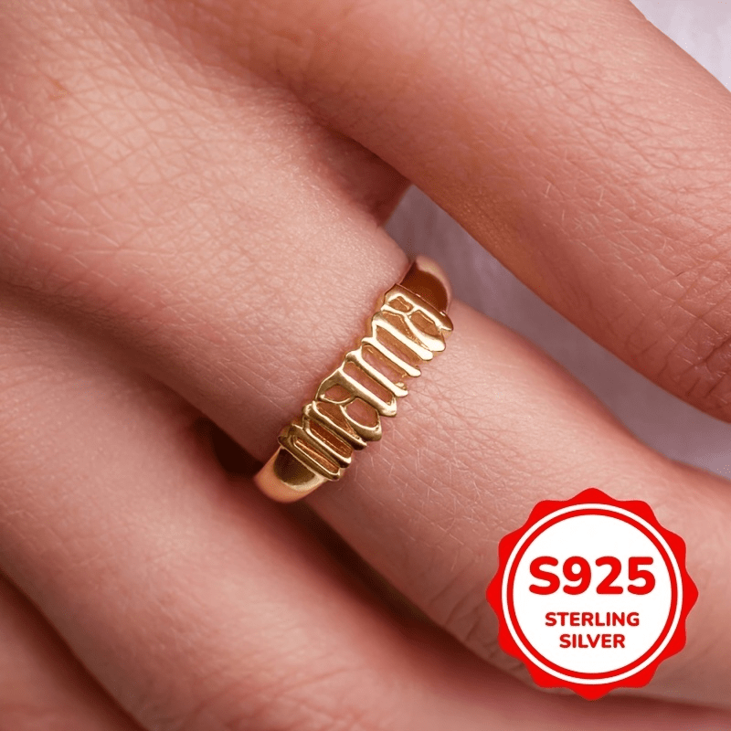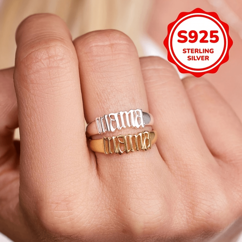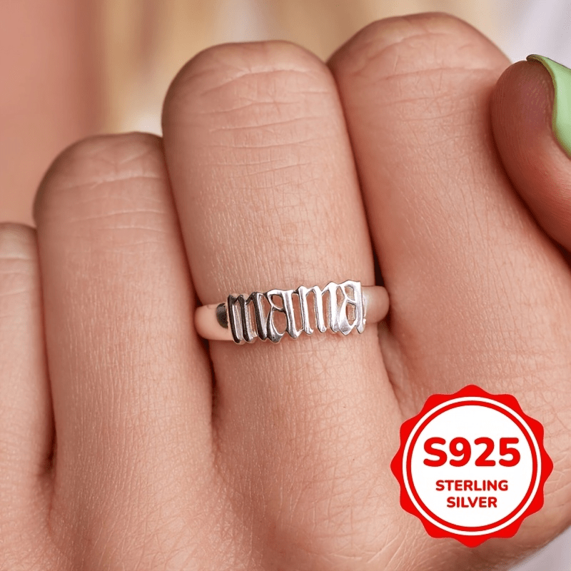 This S925 sterling silver Mama promise ring is an ideal gift for mothers. The script design adds a touch of elegance, perfect for daily wear. Show your appreciation with this polished finish Mother's jewelry piece.