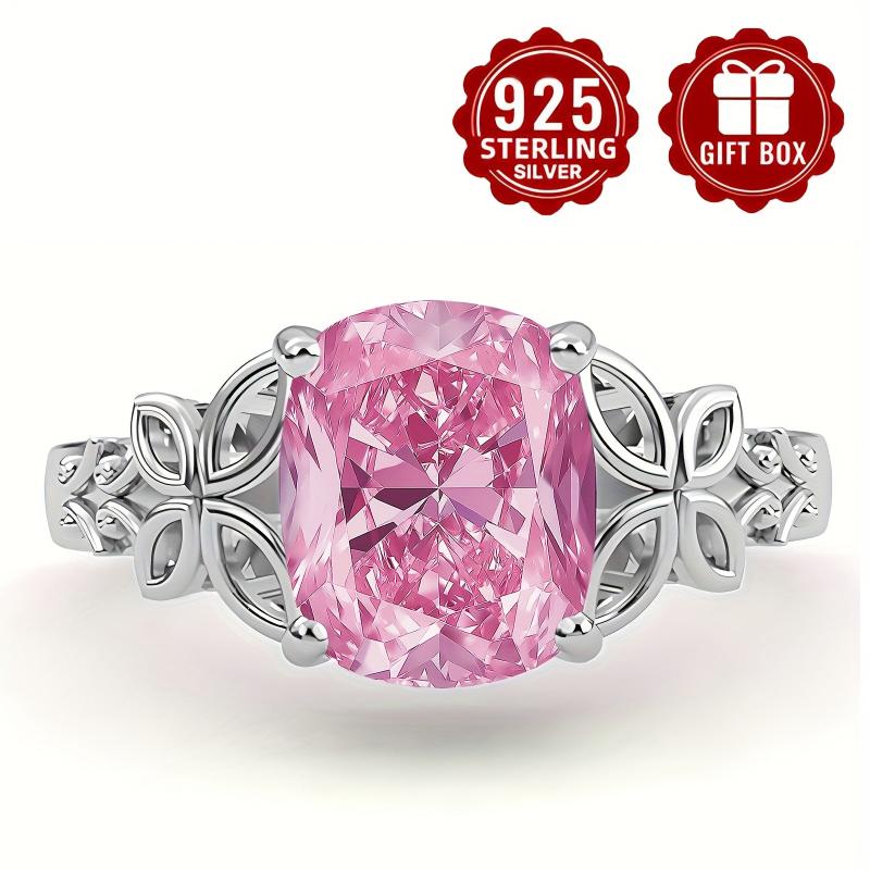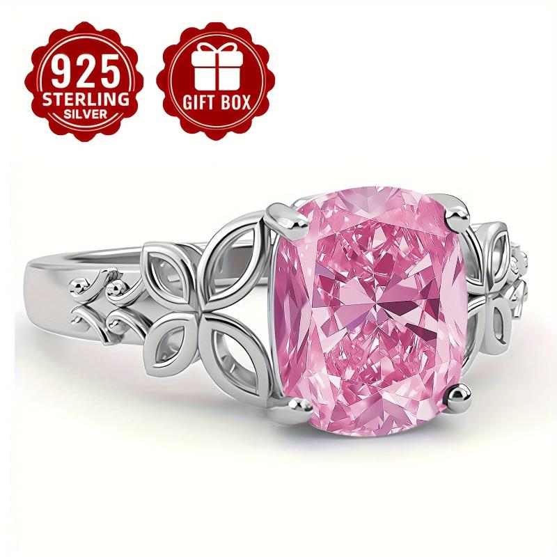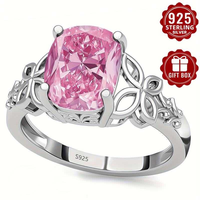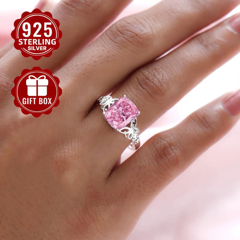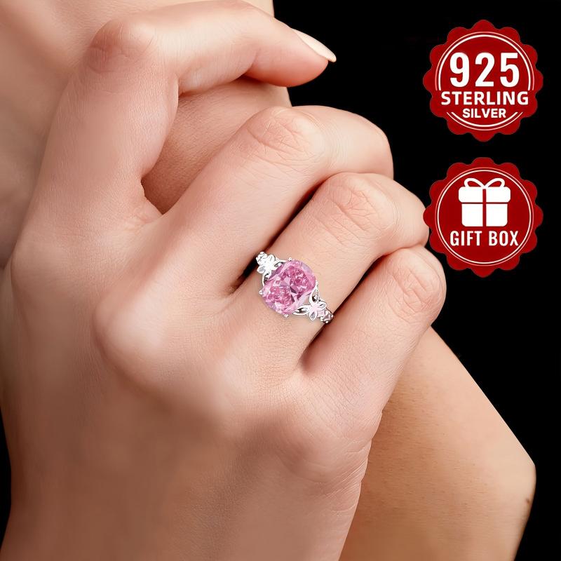 This stunning S925 sterling silver ring features a sparkly pink synthetic cubic zirconia set in a delicate hollow butterfly design. Perfect for everyday wear or as a thoughtful gift for a mother.