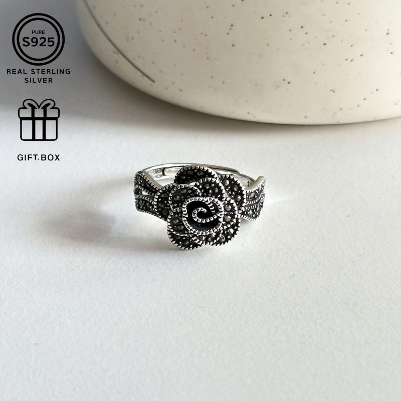 This beautiful S925 sterling silver rose ring is a perfect gift for her. It features a retro boho style, making it a versatile accessory for all seasons. Ideal for sports theme enthusiasts and Christmas gift-giving.