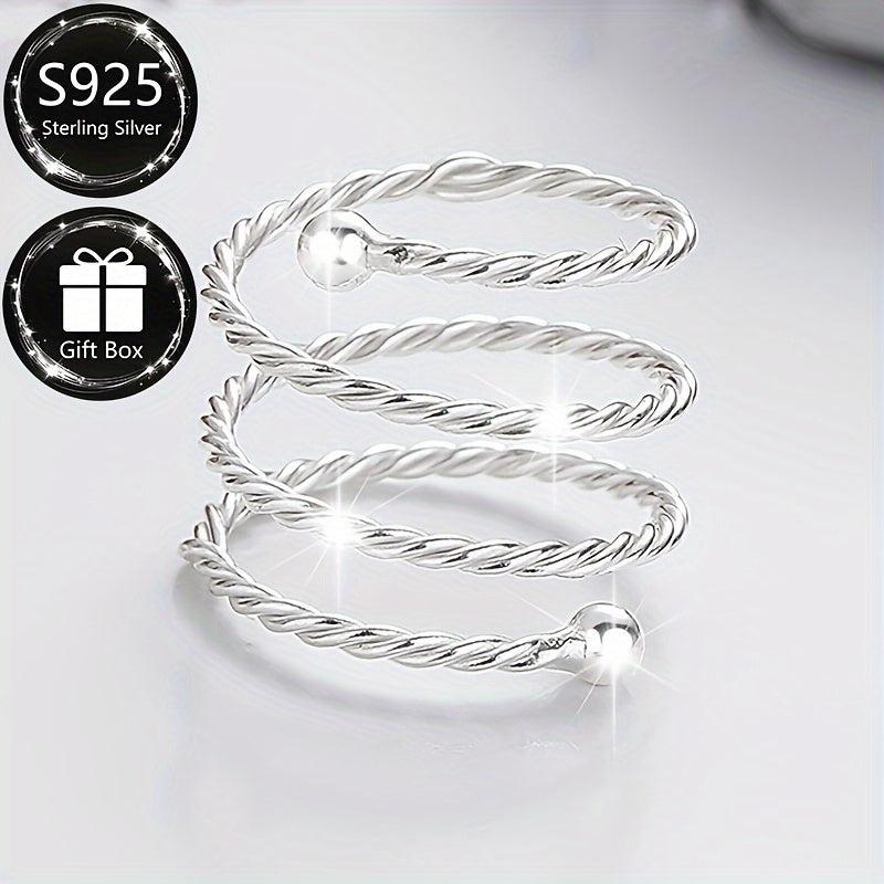 This minimalist spiral open ring is made of S925 sterling silver, perfect for daily commute and gift giving. Includes one ring.