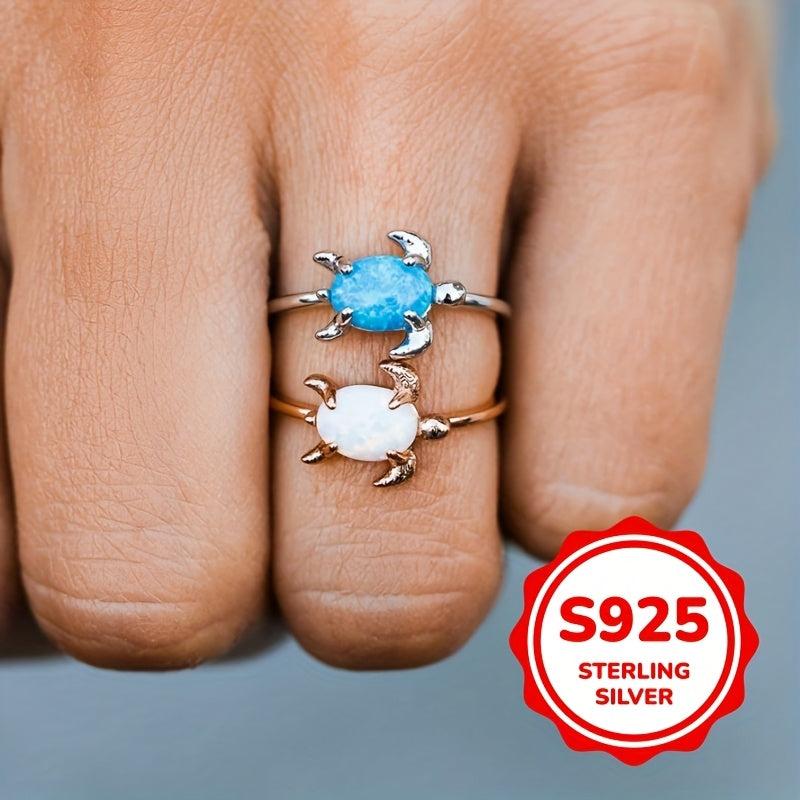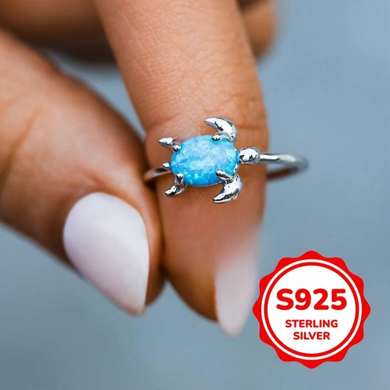 Elevate your style with this fashionable ring featuring synthetic turquoise inlay and a charming turtle design. Perfect for casual wear, parties, or beach outings.
