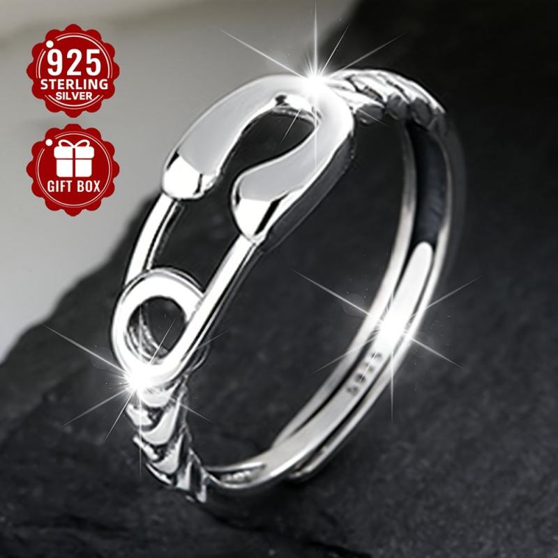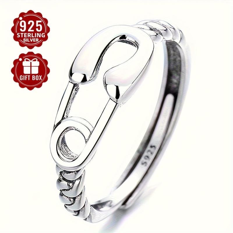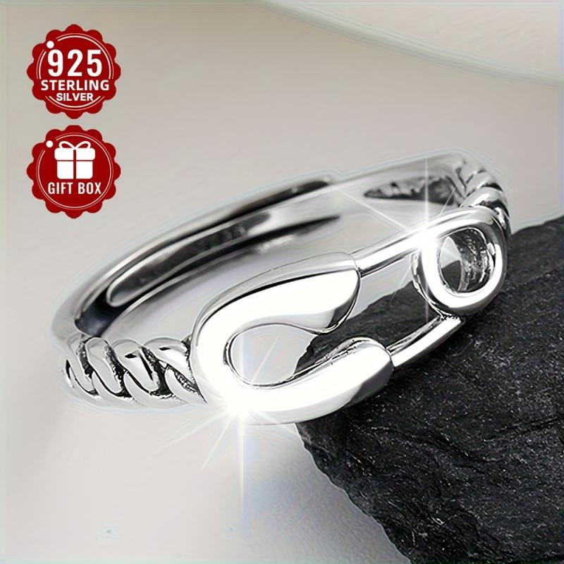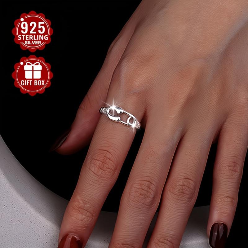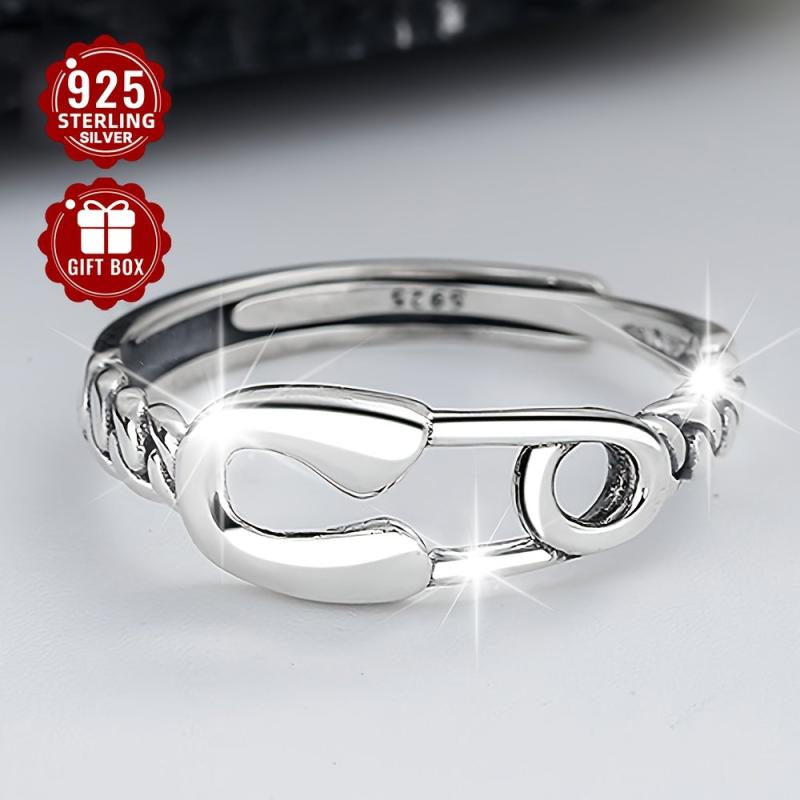 S925 Sterling Silvery Chain Pin Ring for Women&