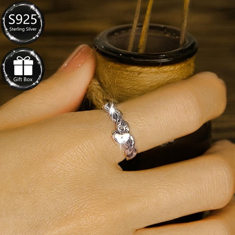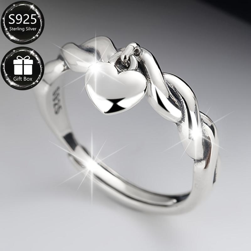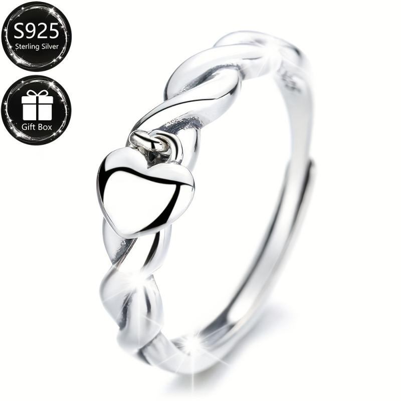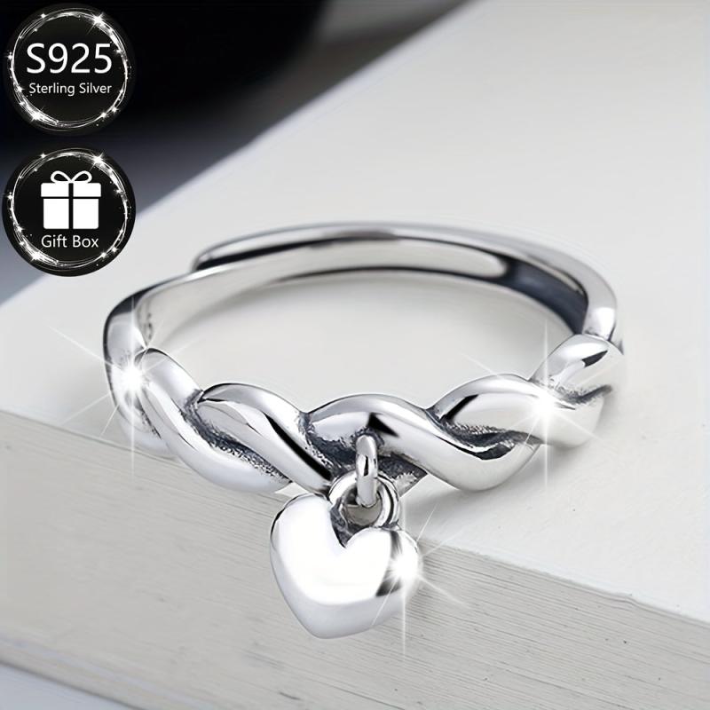 This S925 pure silvery twisted rope heart-shaped tag ring is perfect for daily wear or party occasions. It is an ideal gift for your mom, wife, or girlfriend.