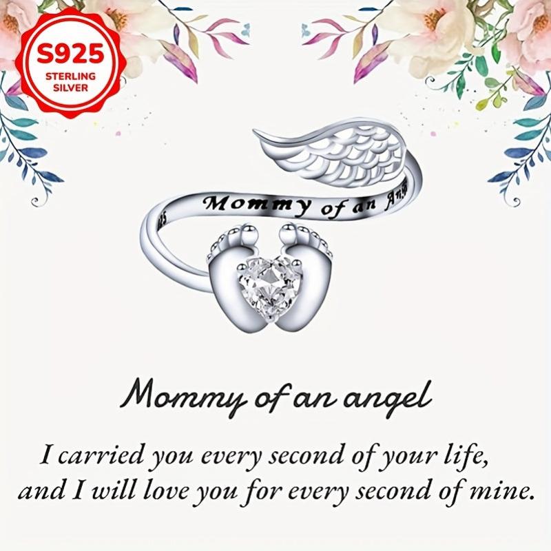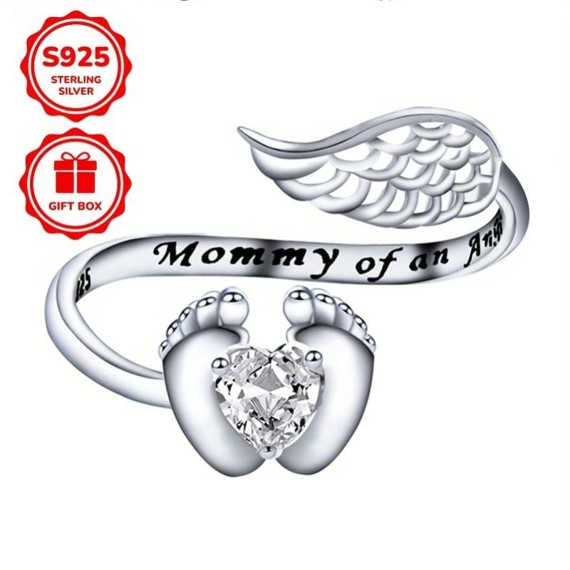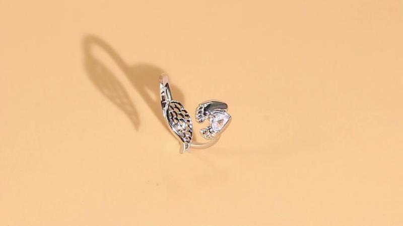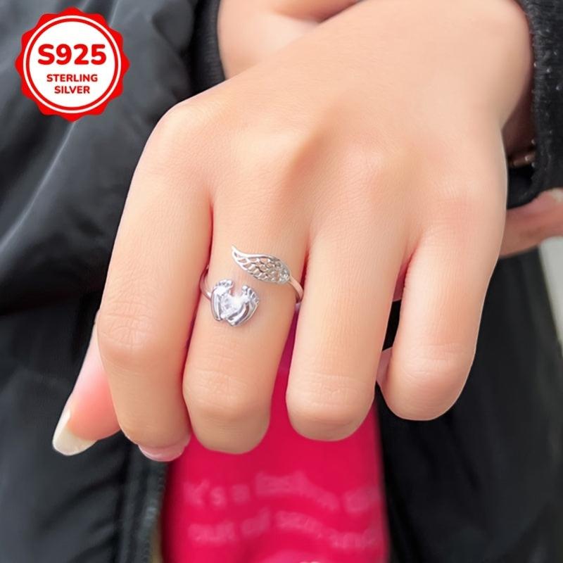 This stunning S925 ring features a wing with tiny feet and heart shape synthetic stone. Hypoallergenic and stylish, perfect for everyday wear or special occasions.