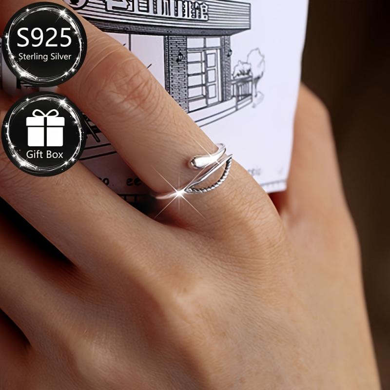 Add a touch of elegance to your look with this vintage sterling silver open ring featuring a geometric design. Adjustable to fit most sizes.
