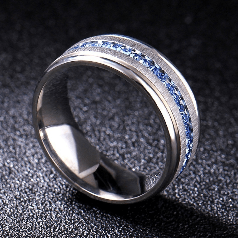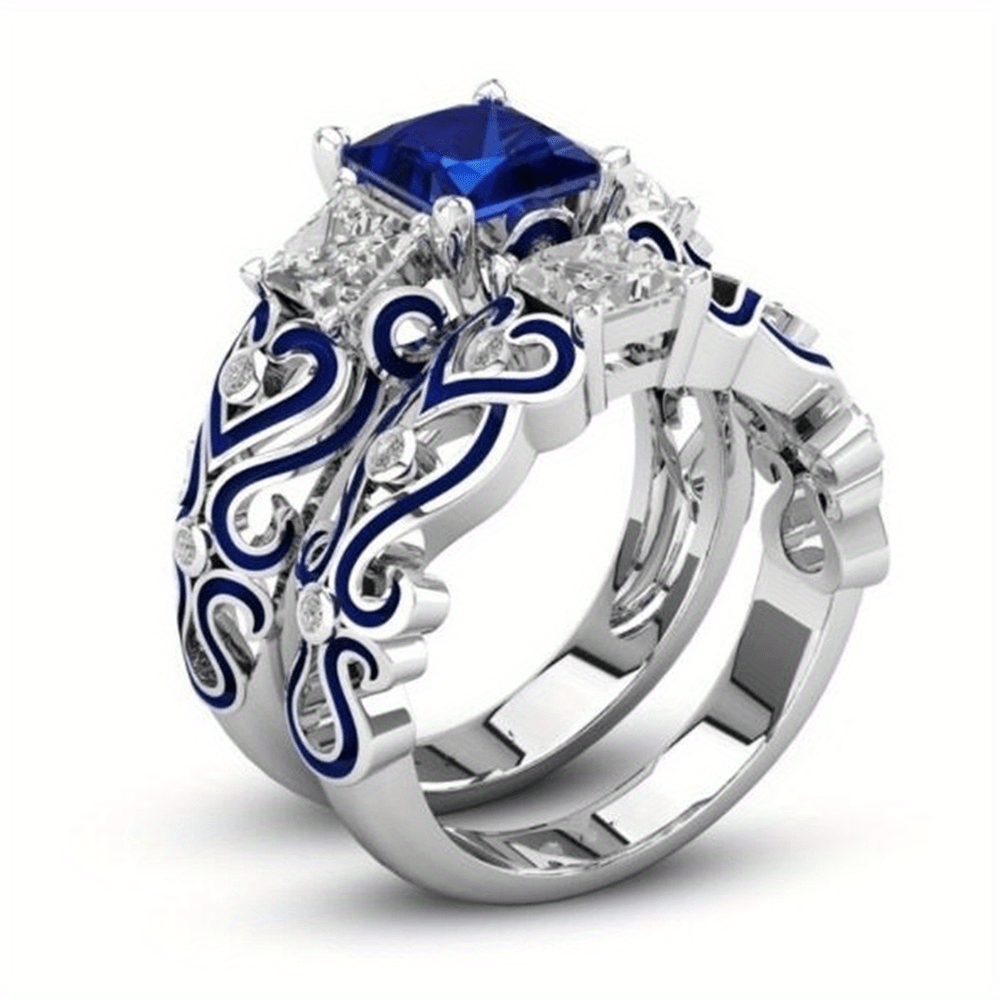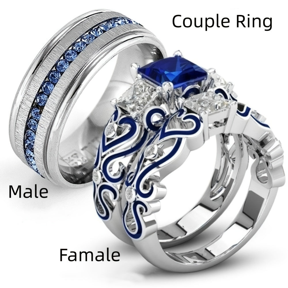 Elegant set of engagement rings featuring sapphire gemstones in durable stainless steel. Perfect for couples looking for a symbol of their love.