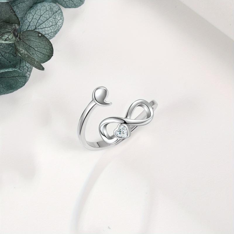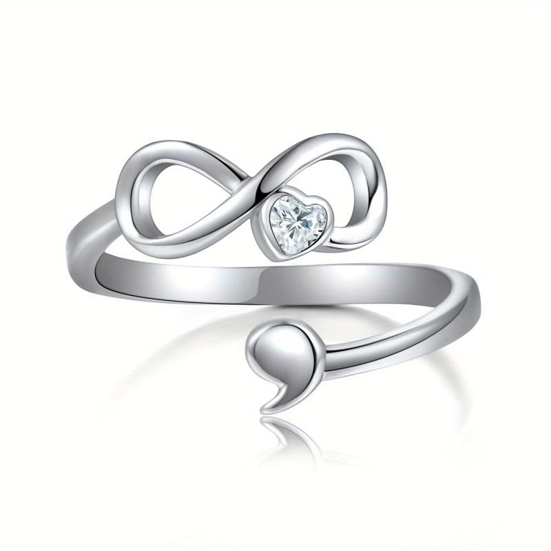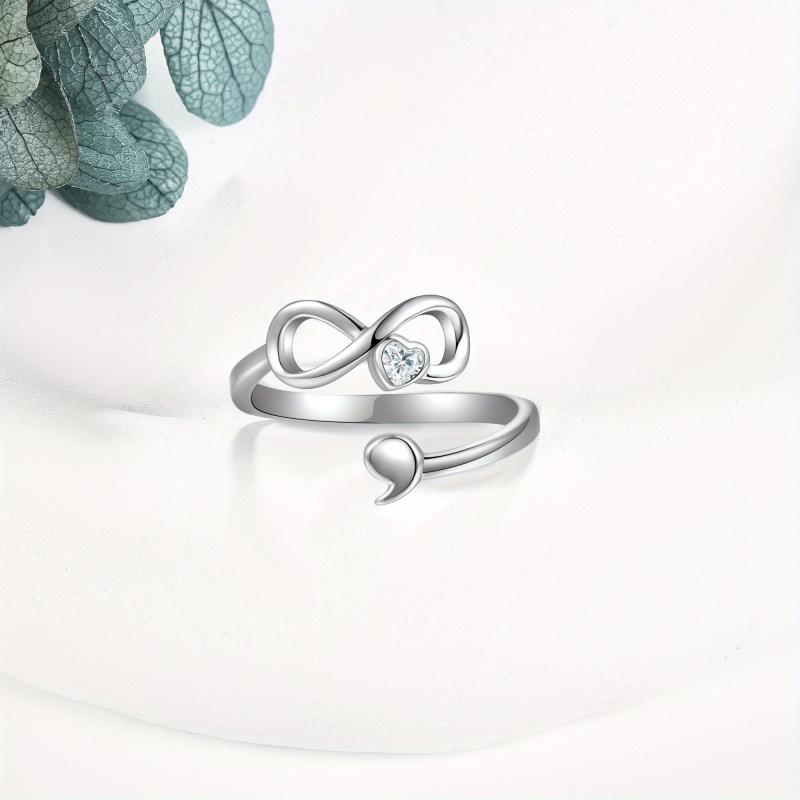 This beautiful infinity adjustable ring features a semicolon design symbolizing perseverance and hope. Crafted from 925 sterling silver, it is a meaningful piece of jewellery that encourages you to keep going.