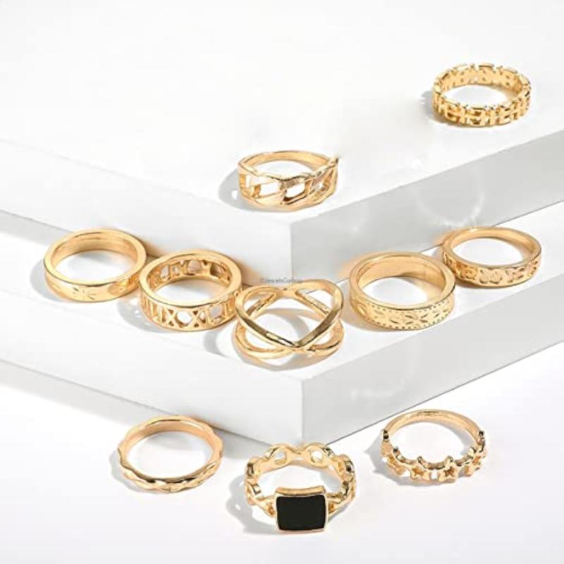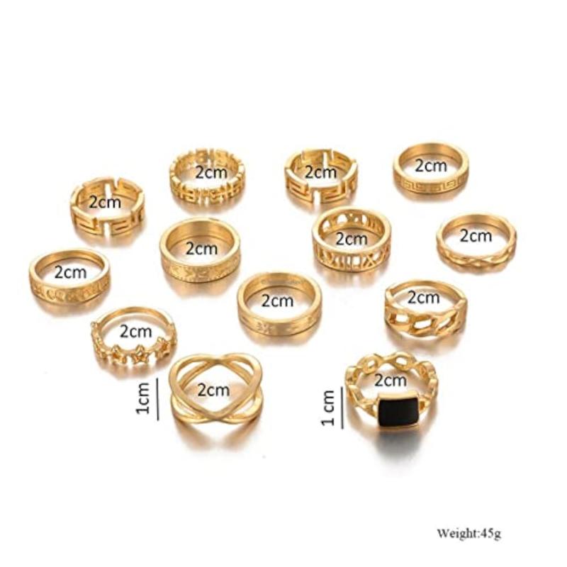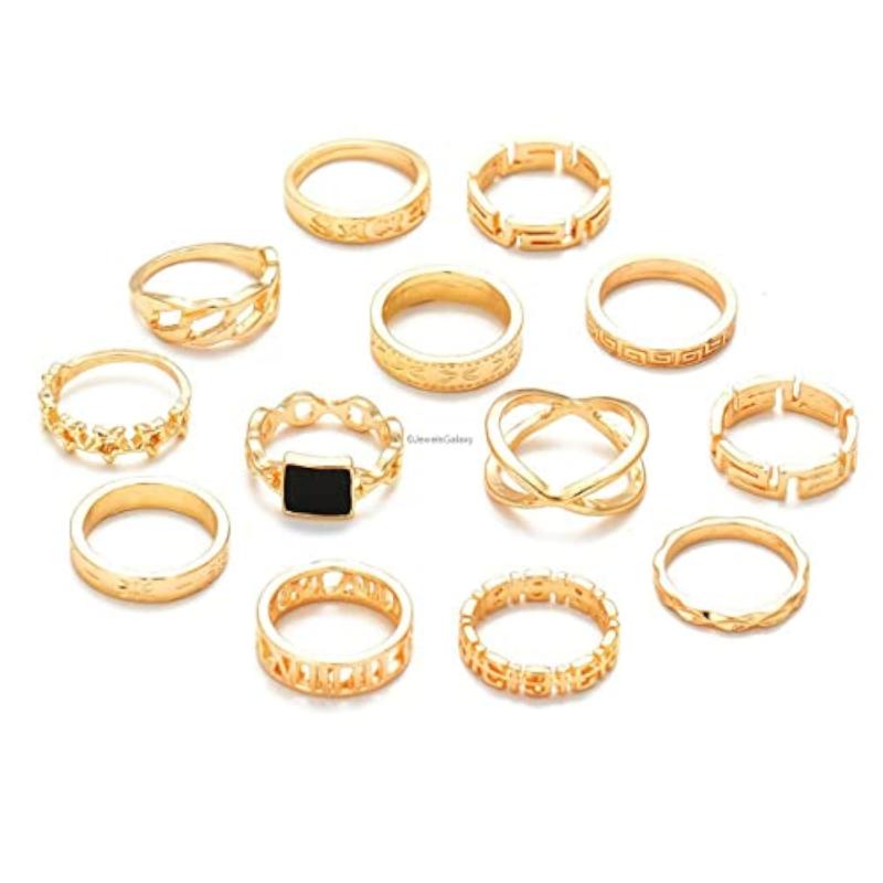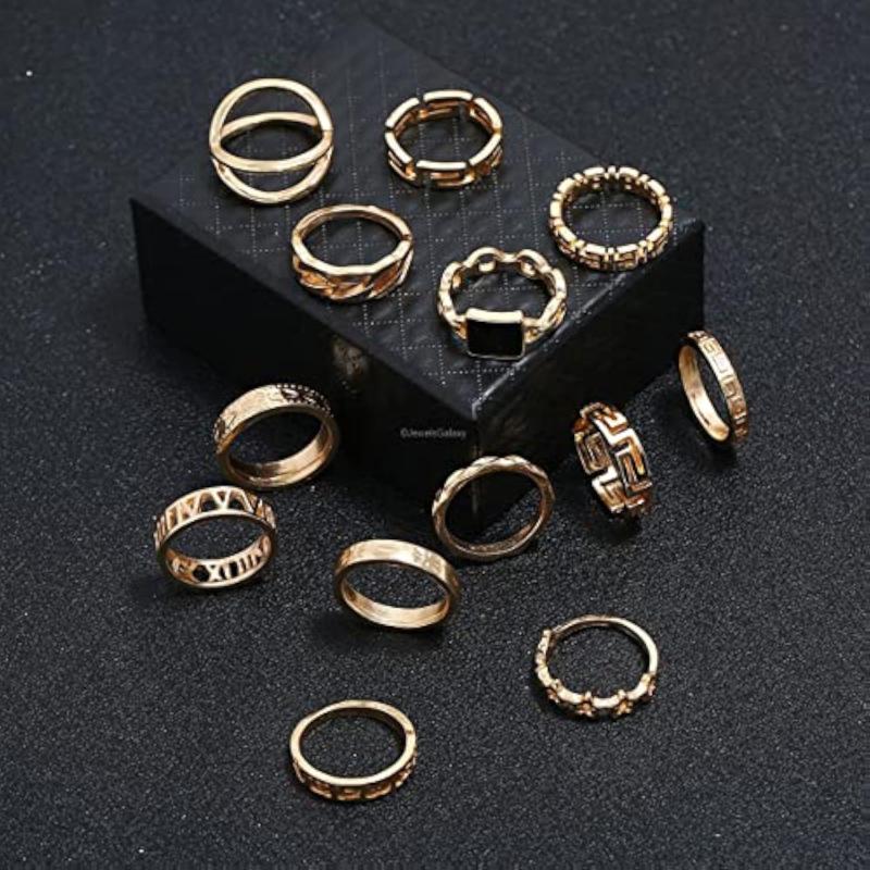 Elevate your ring game with this set of 13 stackable rings featuring a modern design. Mix and match to create your own unique look.