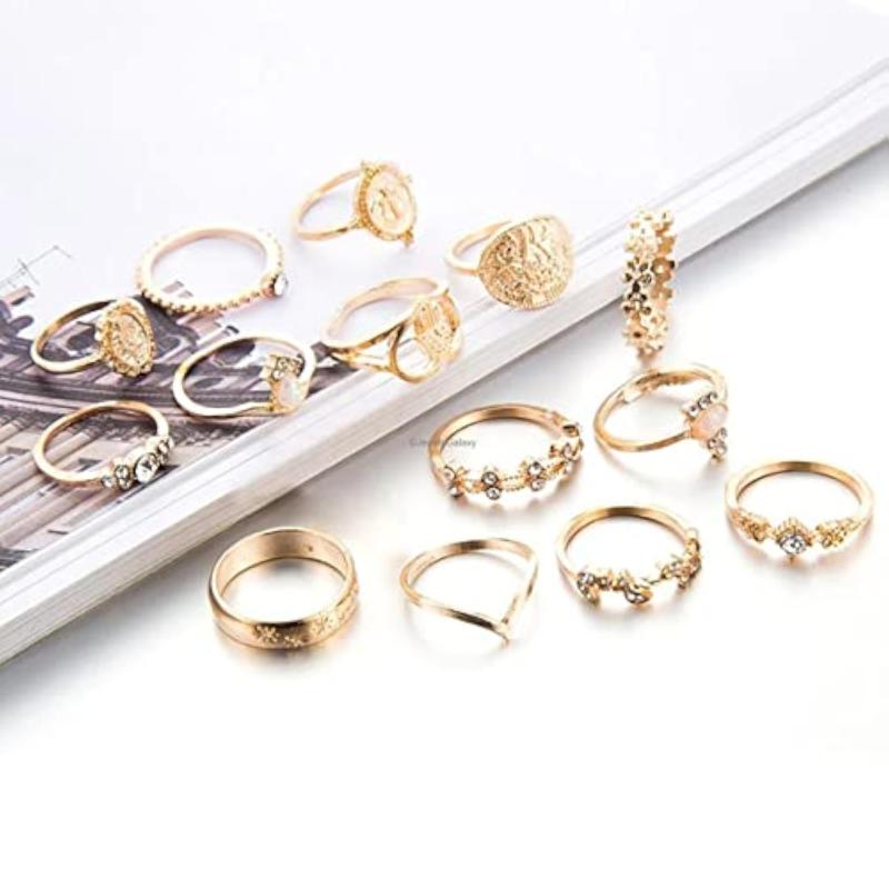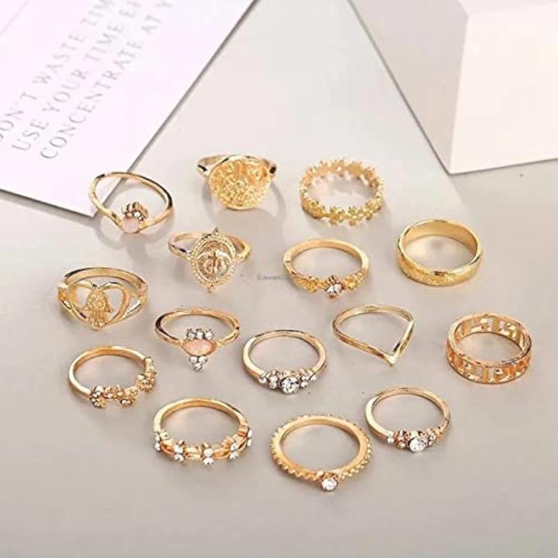 Elevate your style with this set of 15 stackable rings that can be mixed and matched for a unique look. Made of high-quality materials for lasting beauty.