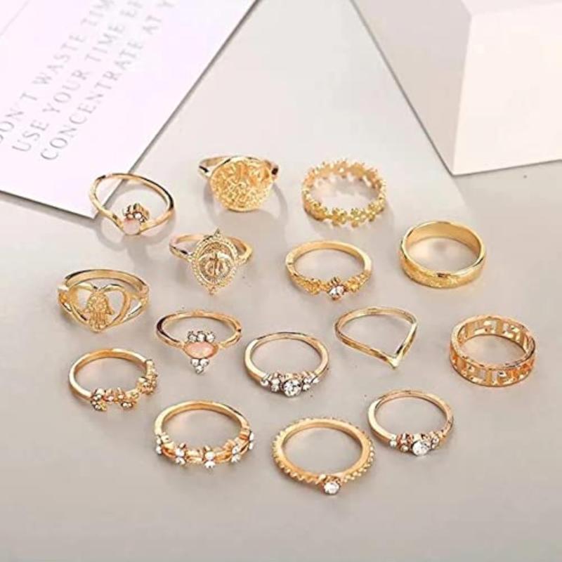 Elevate your style with this chic set of 15 stackable rings. Mix and match to create your own unique look.