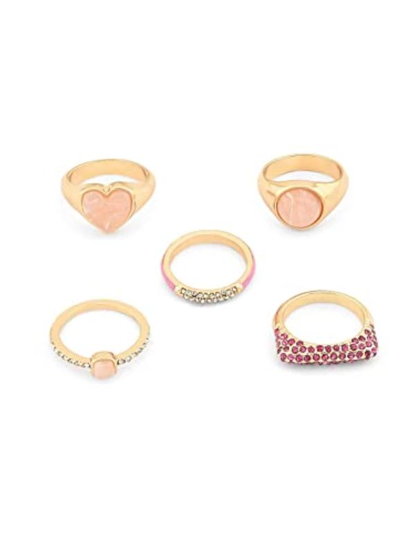 Elevate your style with this set of 5 classy and contemporary stackable finger rings designed for women.