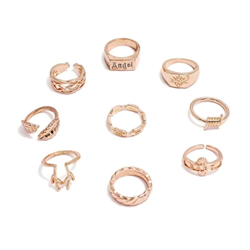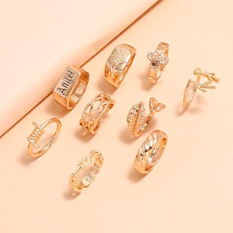 Elevate your style with this set of 9 metal boho midi finger rings. Perfect for adding a touch of elegance to any outfit.
