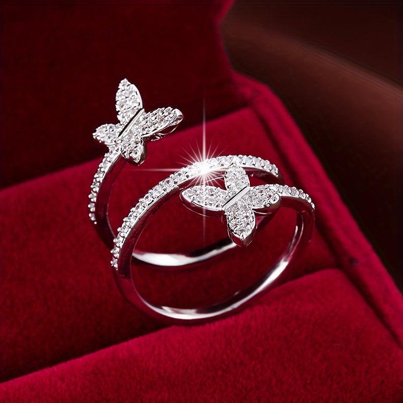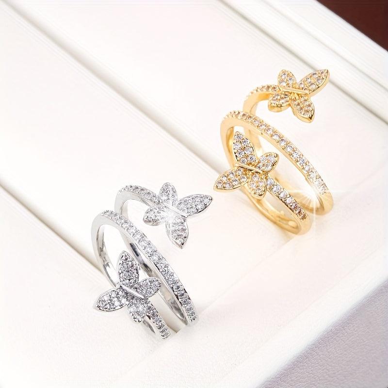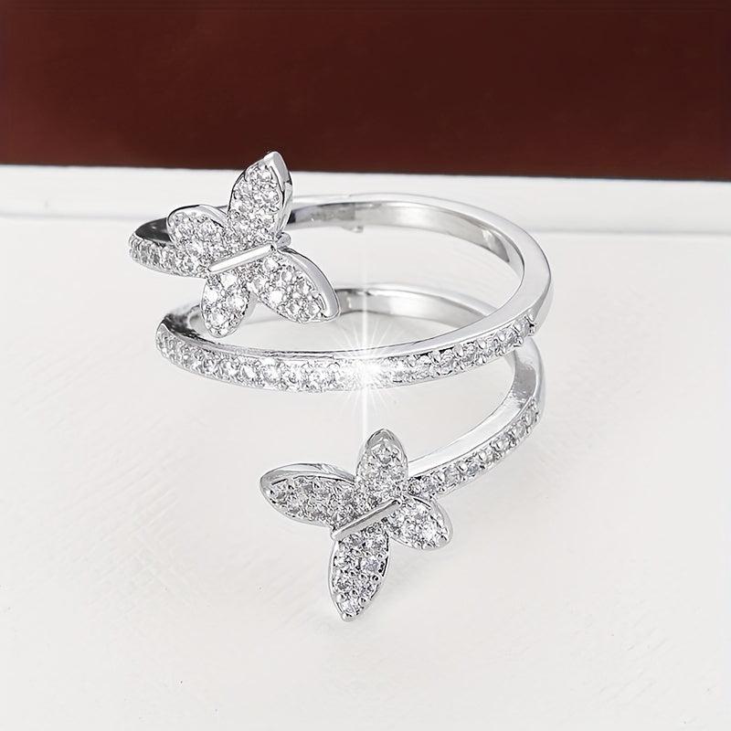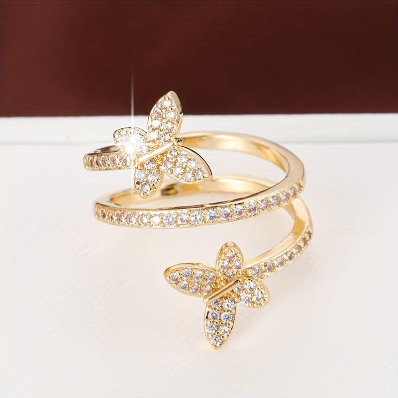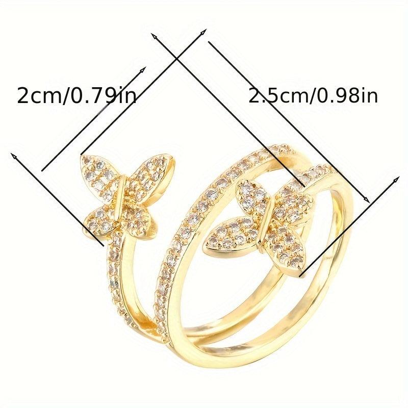 This stunning butterfly wrap ring is made of copper with synthetic zirconia, perfect for daily wear in all seasons.