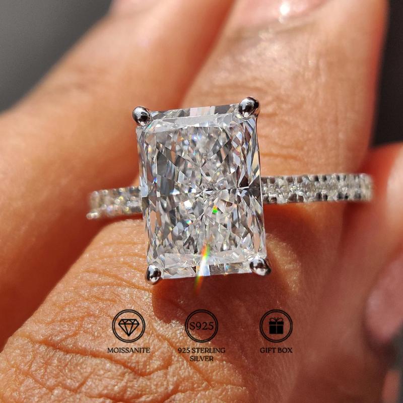 This stunning Shavano sterling silver ring features a beautiful moissanite stone in 1, 2, or 3 carat size. It is 18K gold plated, making it perfect for all seasons. An ideal gift for Valentine's Day, weddings, or banquets.