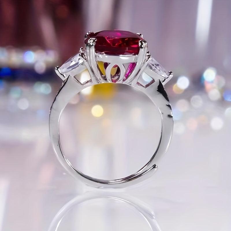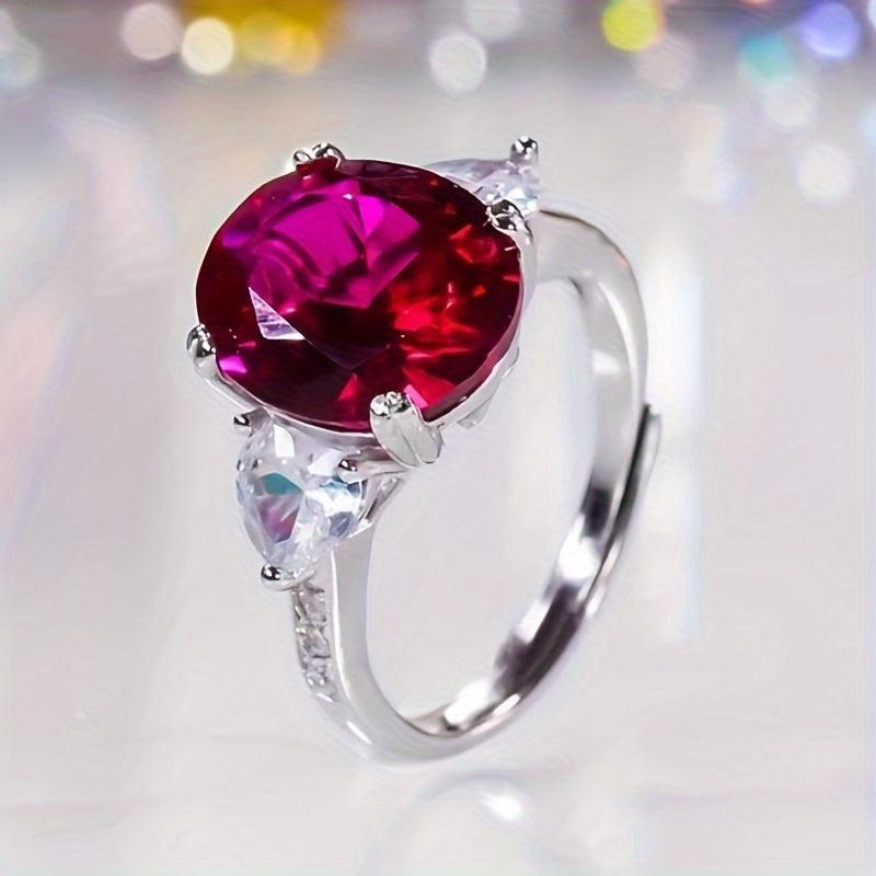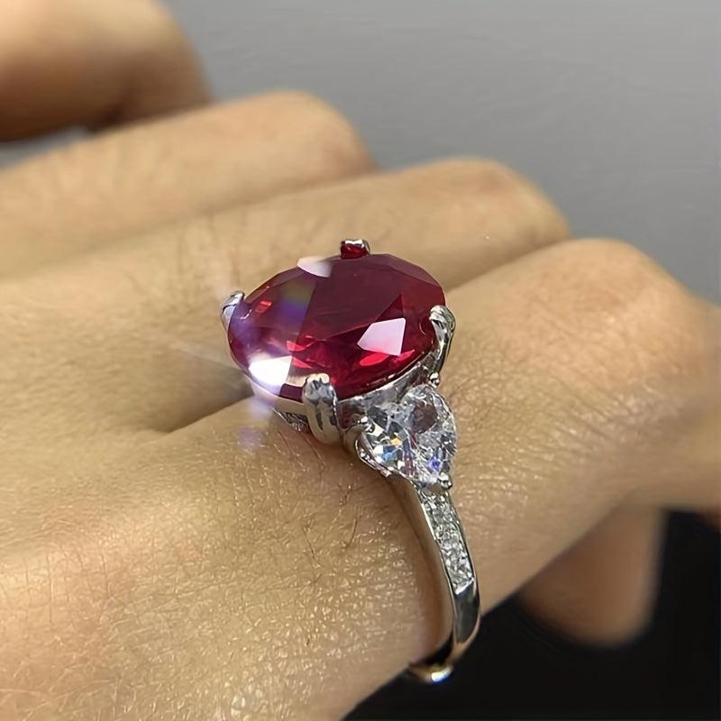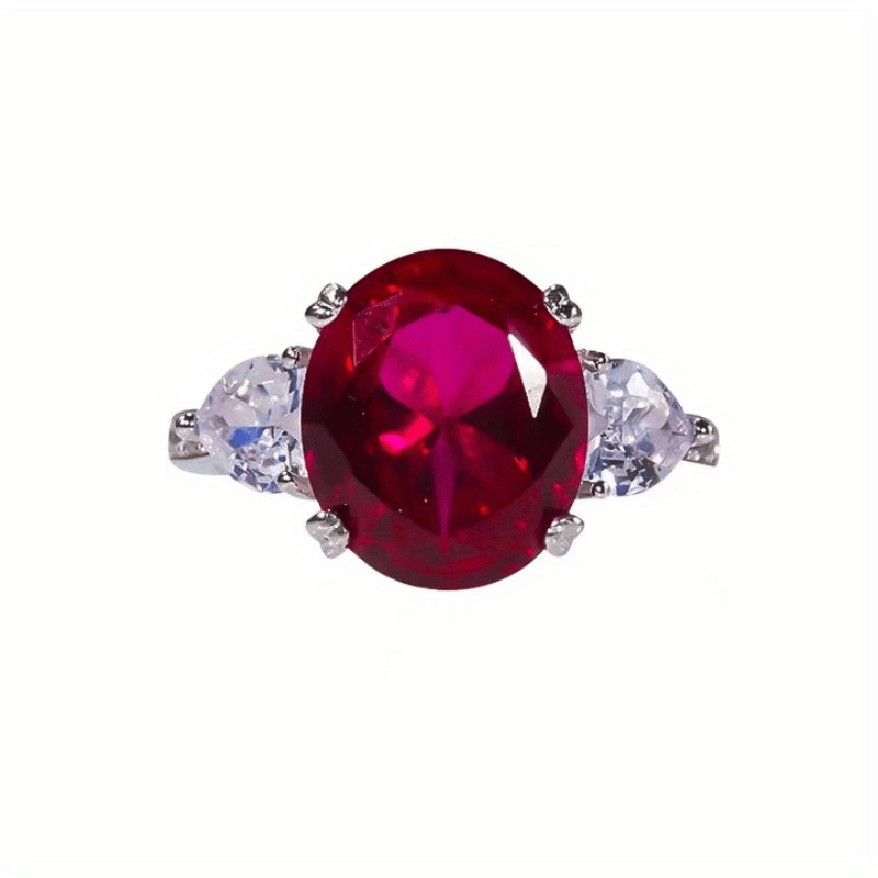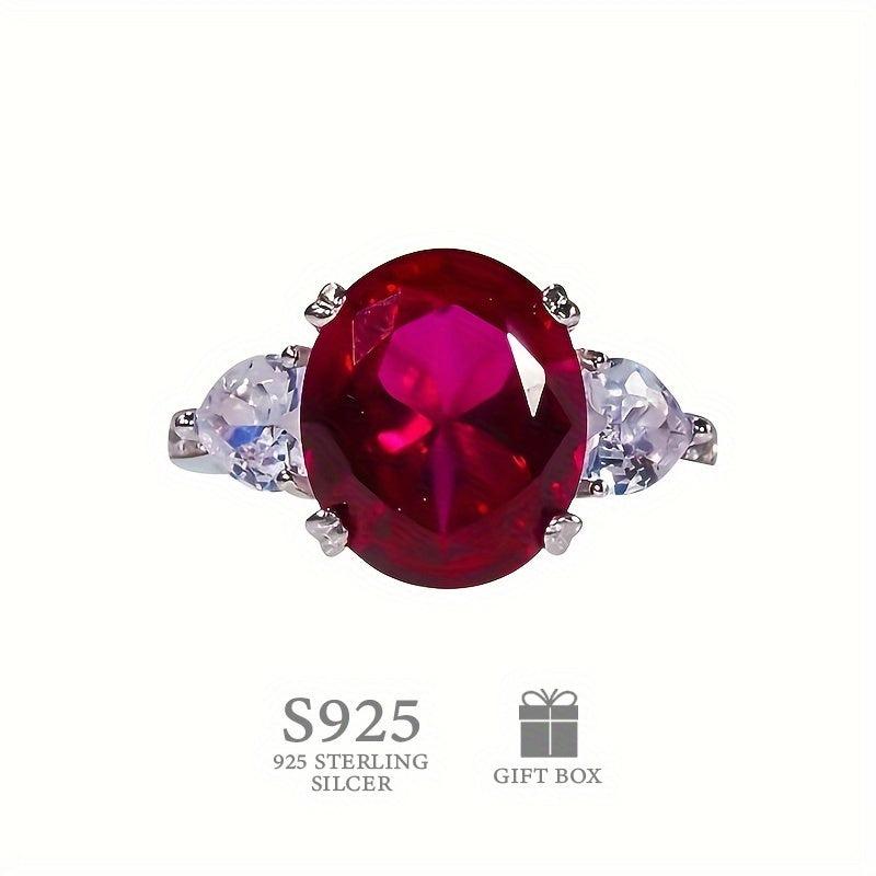 Exquisite red synthetic ruby ring crafted in 925 sterling silver with crystal accents, perfect for wedding, engagement, anniversary gifts for her. Includes 3g gemstone.