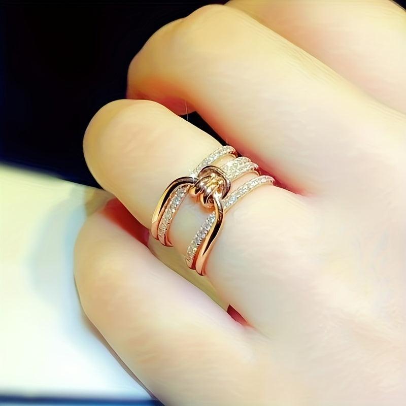 Elegant promise ring with inlaid synthetic zirconia, perfect for engagement, weddings, or evening parties.