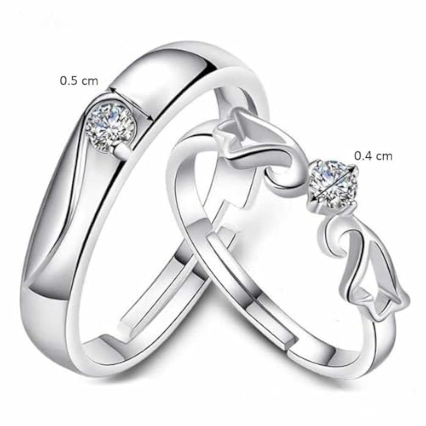These stunning silver plated rings feature angel wing design with cubic zirconia stones. Perfect for couples or as promise rings. The set includes one ring for each partner.