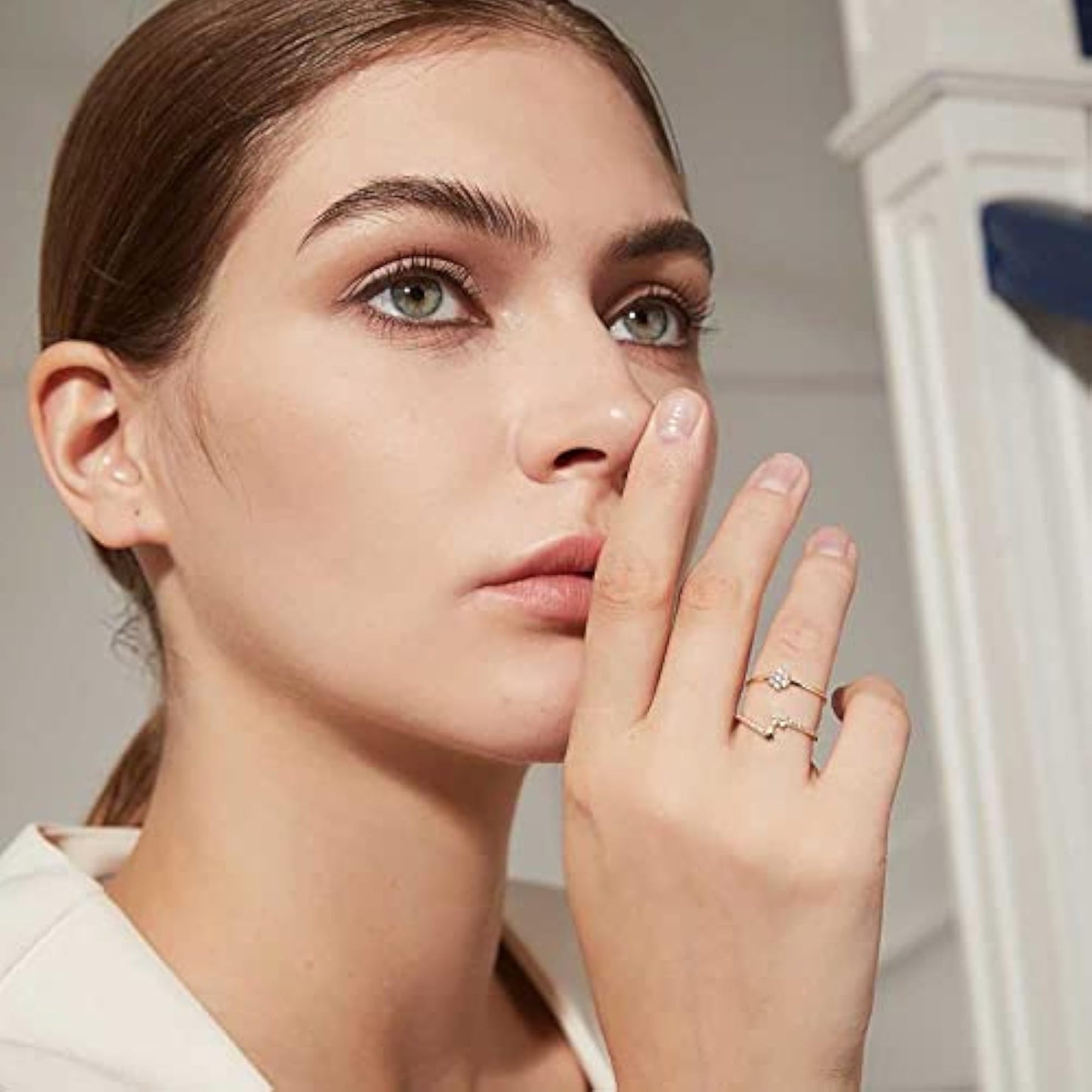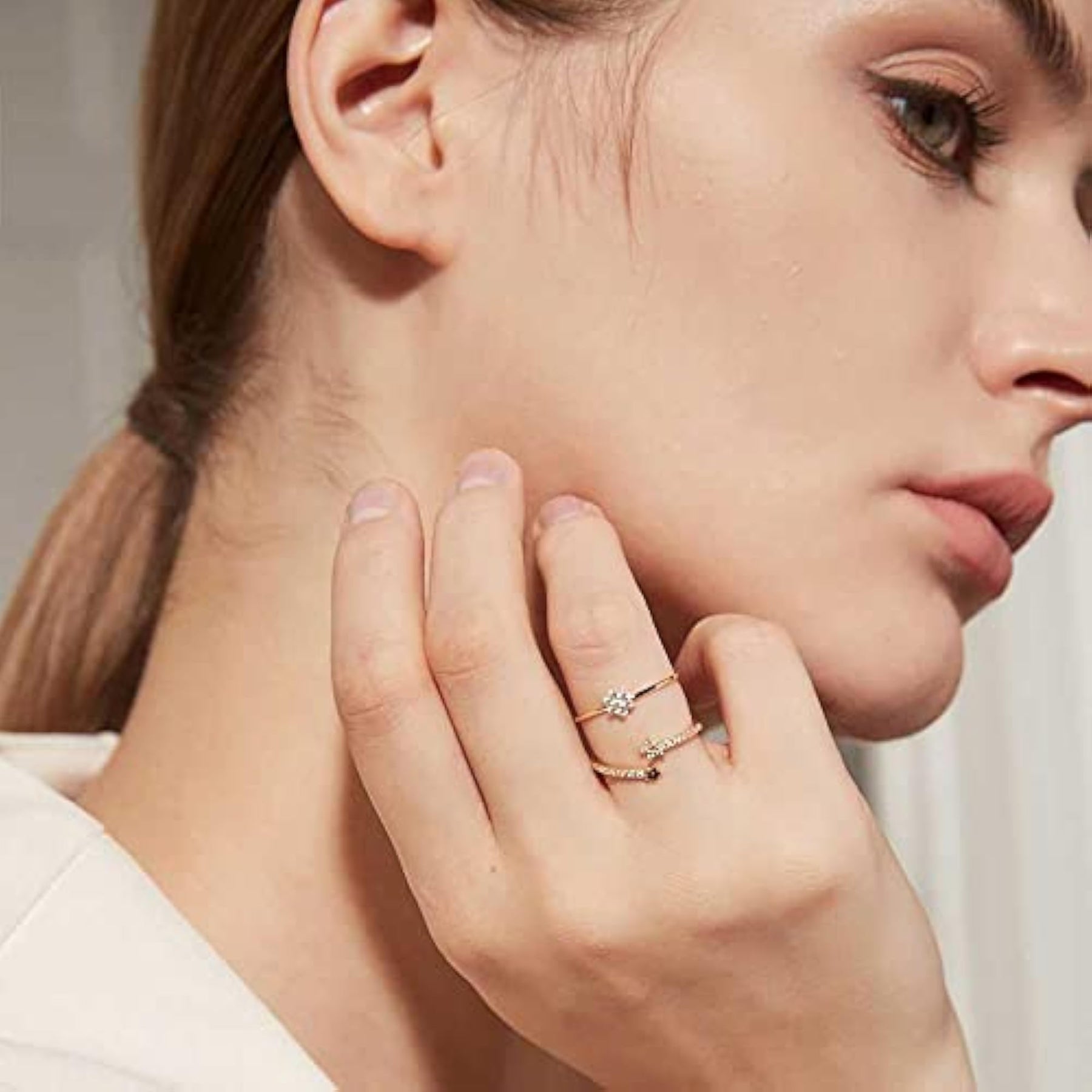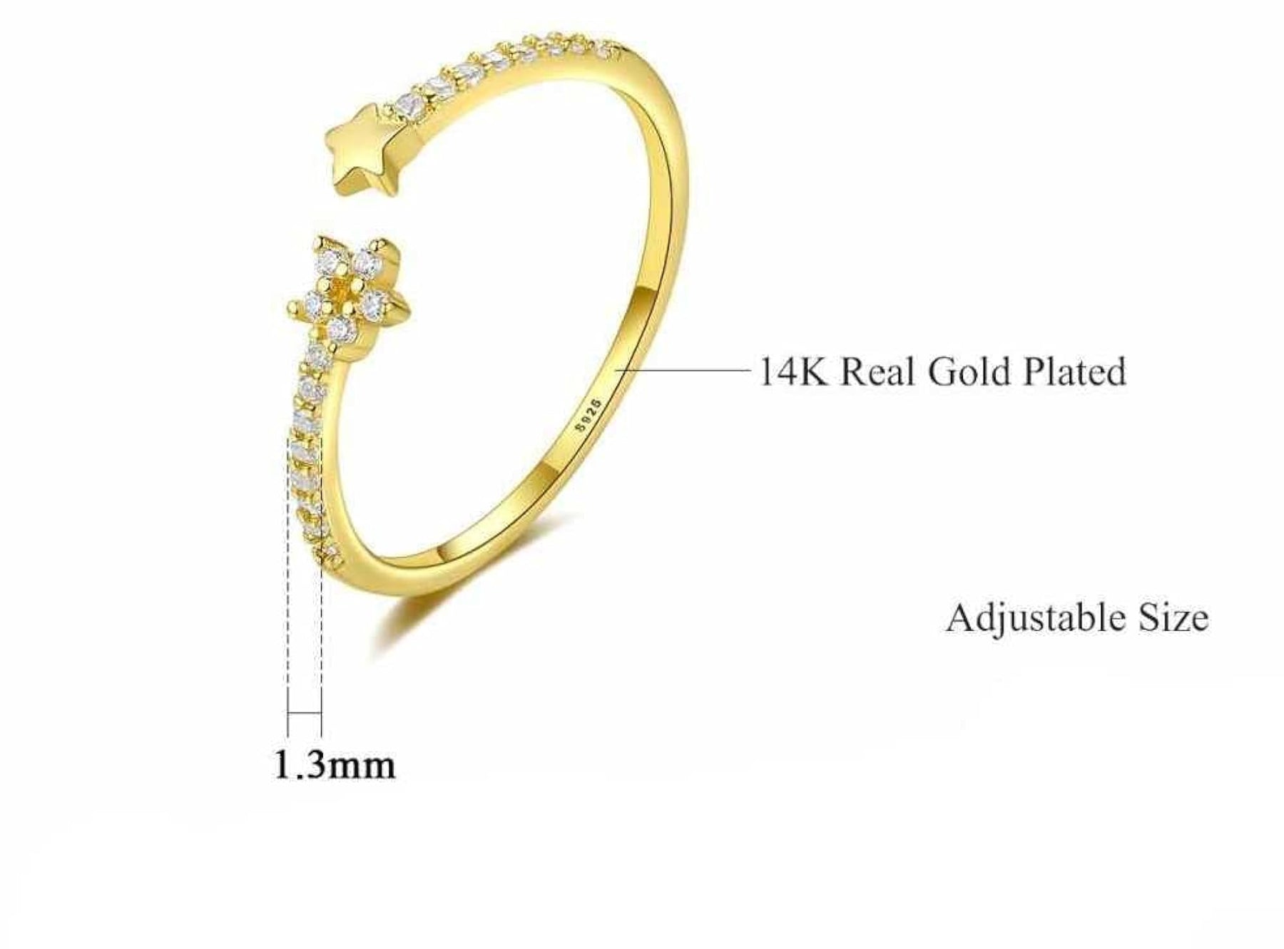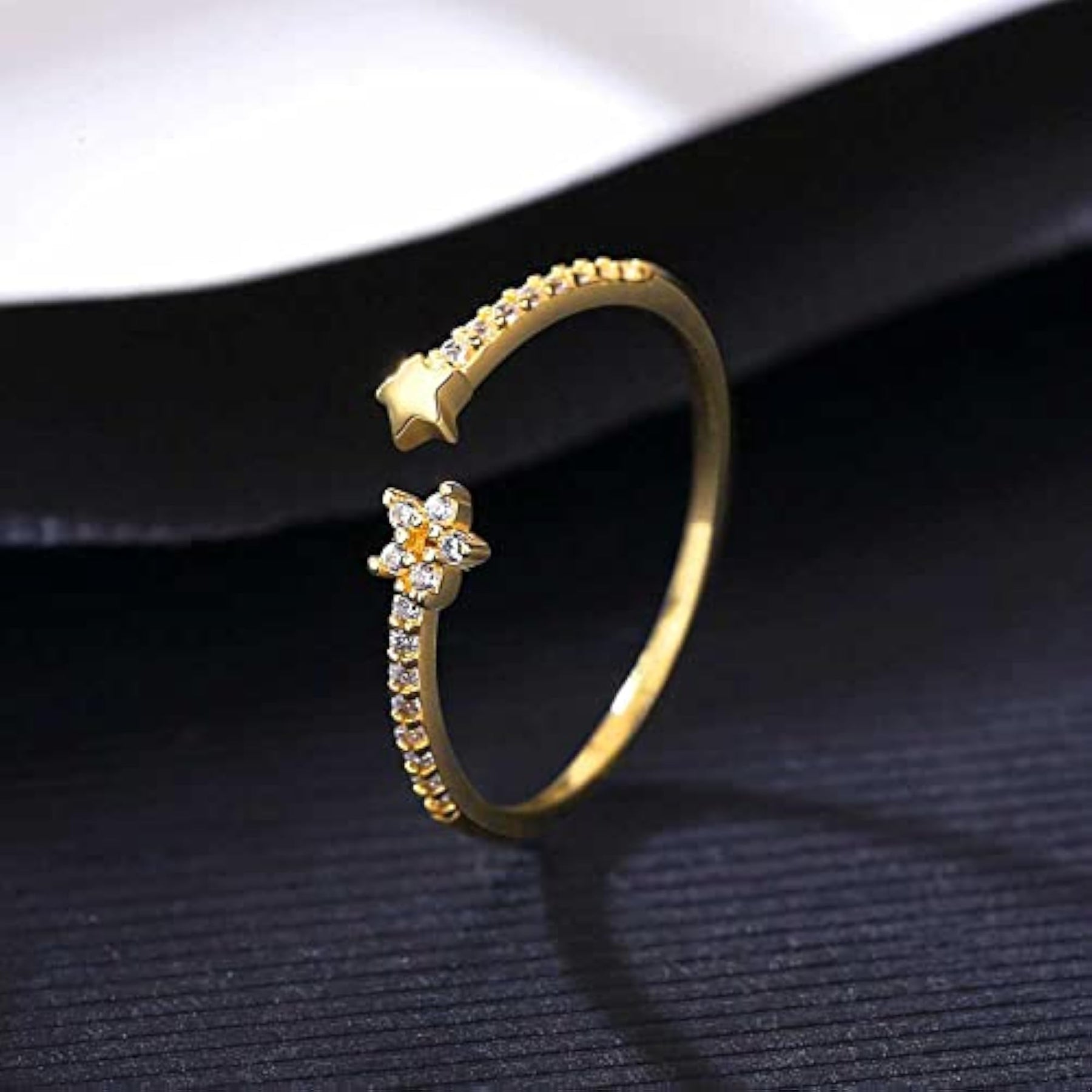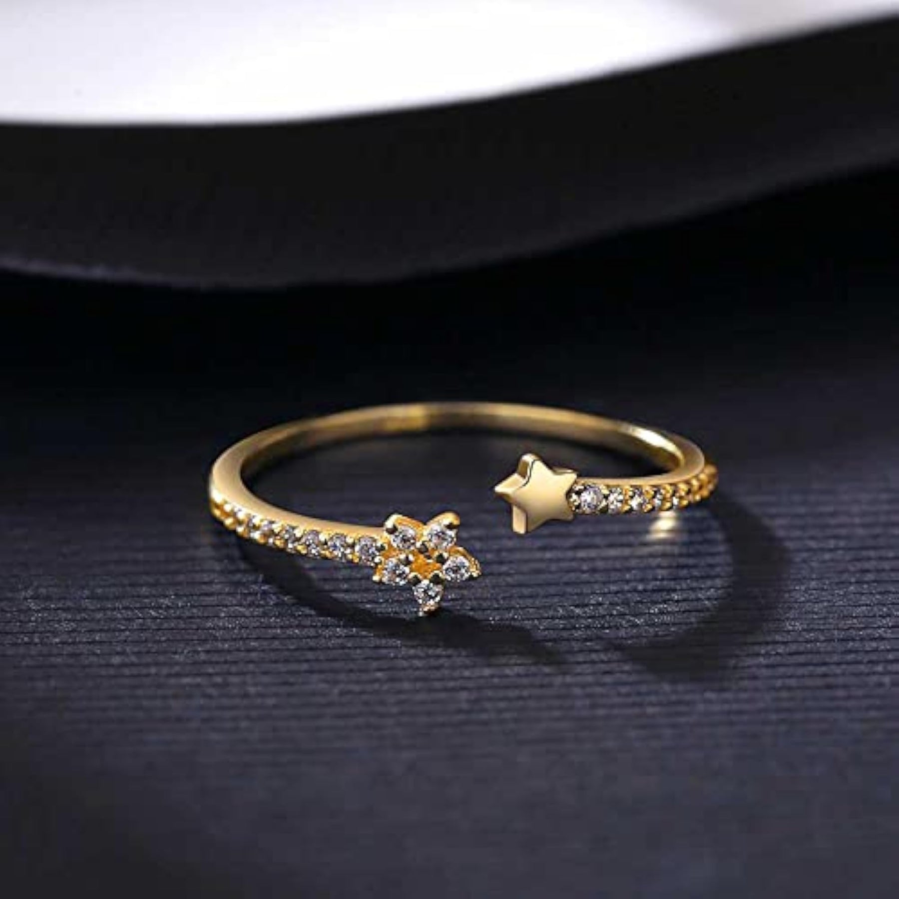 Add a touch of glamour to your look with this stunning floral engagement ring featuring sparkling cubic zirconia. The adjustable design ensures a perfect fit for any finger size.