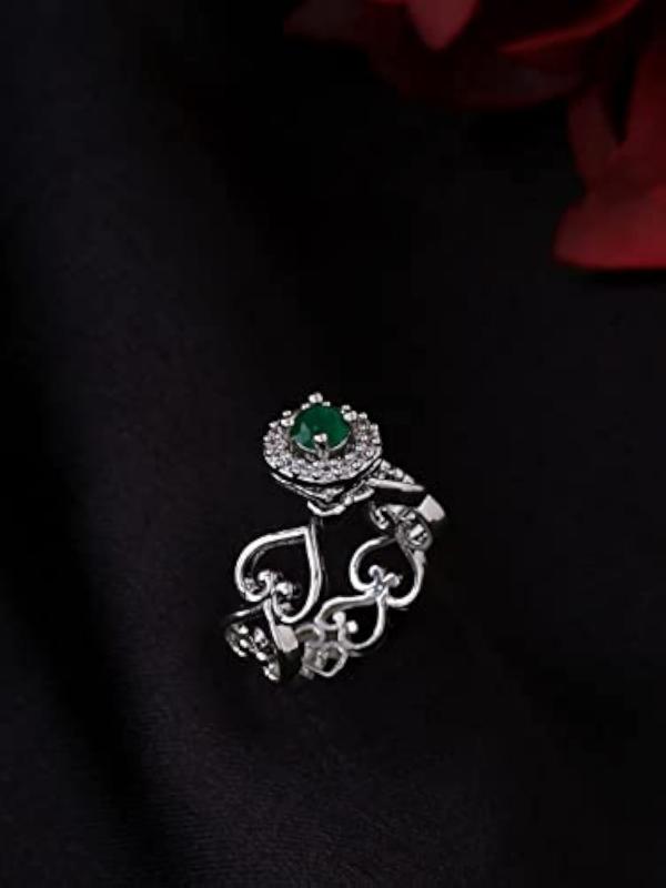 This elegant ring features a heart shape design with pearl and crystal studded details. Perfect for Valentine's Day or any special occasion.