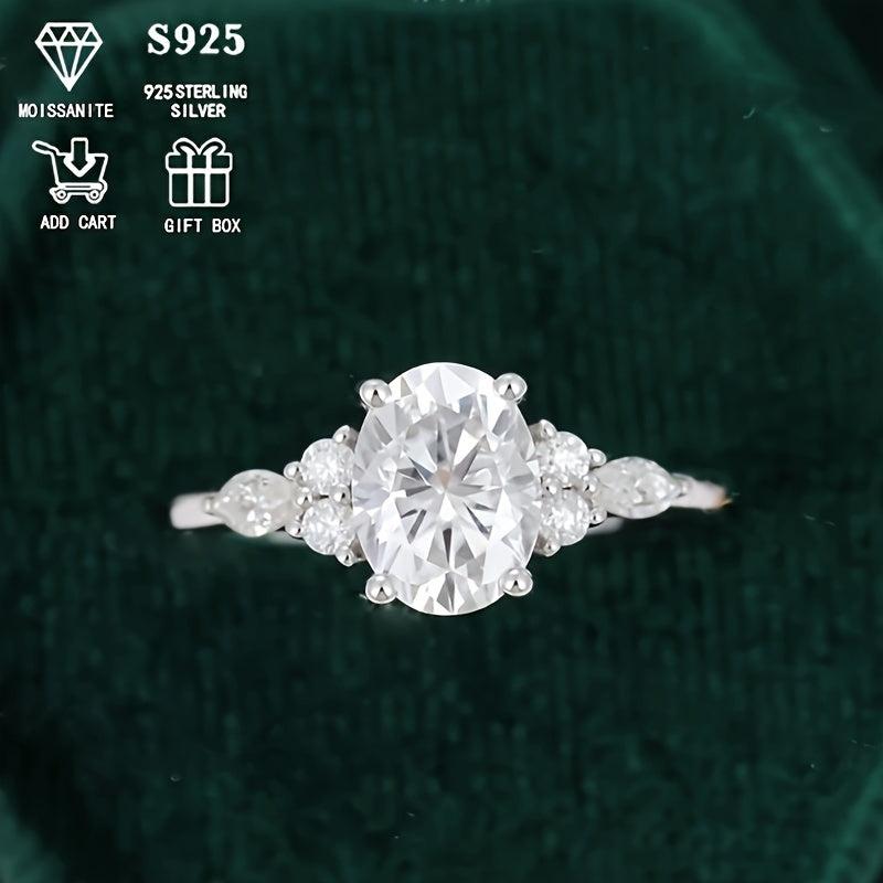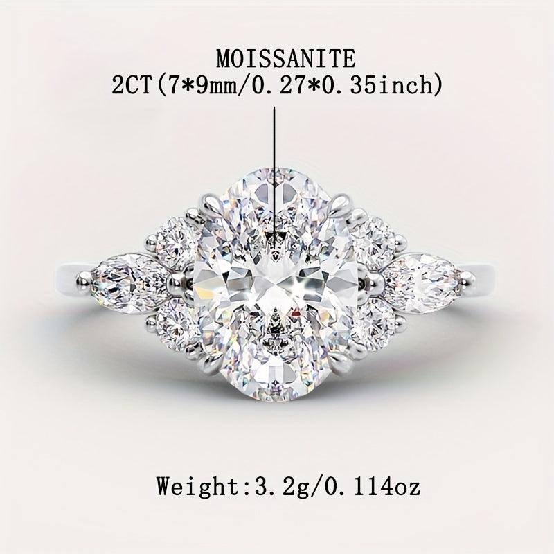 Stunning Silvery S925 ring featuring a 2ct oval moissanite diamond, perfect for personal or proposal engagement and weddings. Designed with low allergy properties.