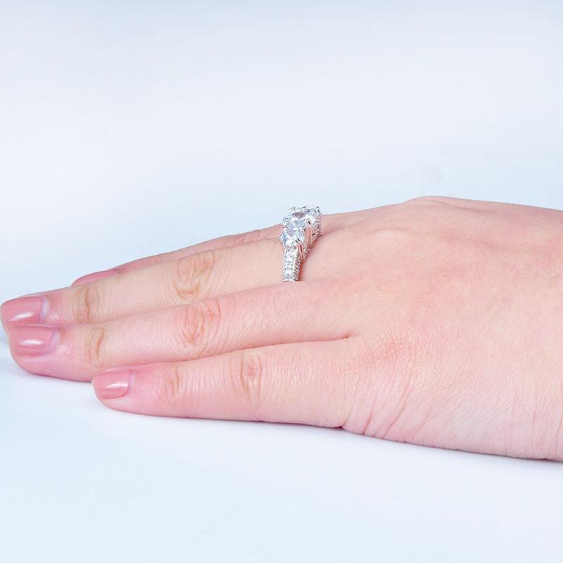 This beautiful silvery ring features three sparkling zirconia stones, making it the perfect accessory for brides or as a Christmas gift. It is an elegant and timeless piece of jewelry.