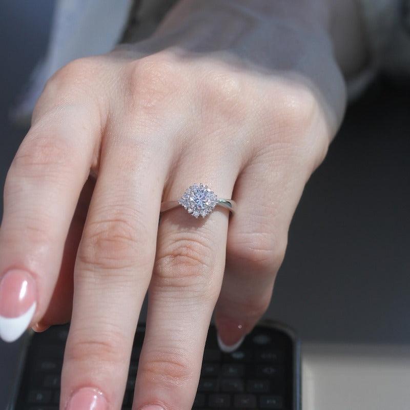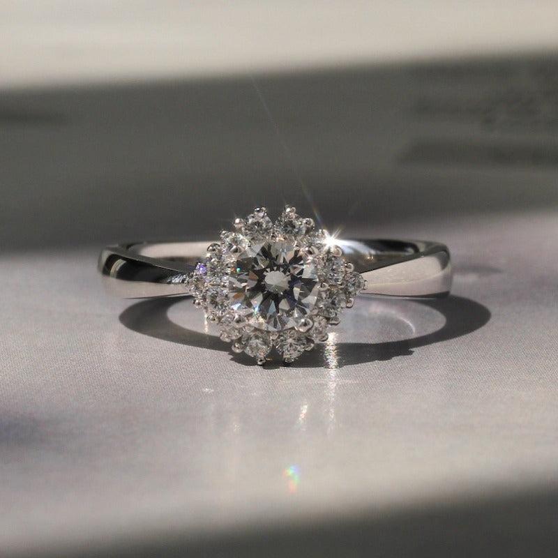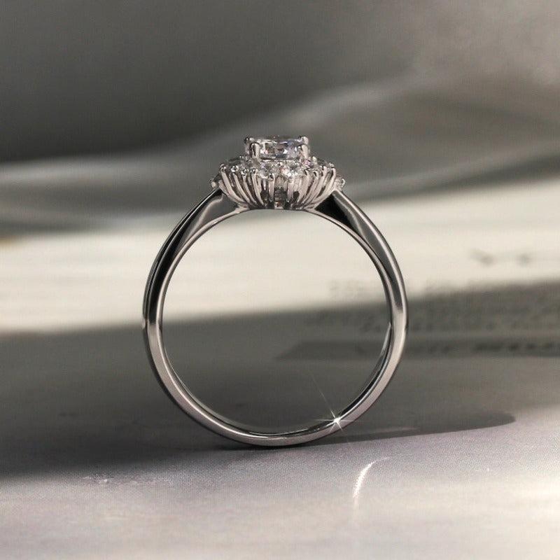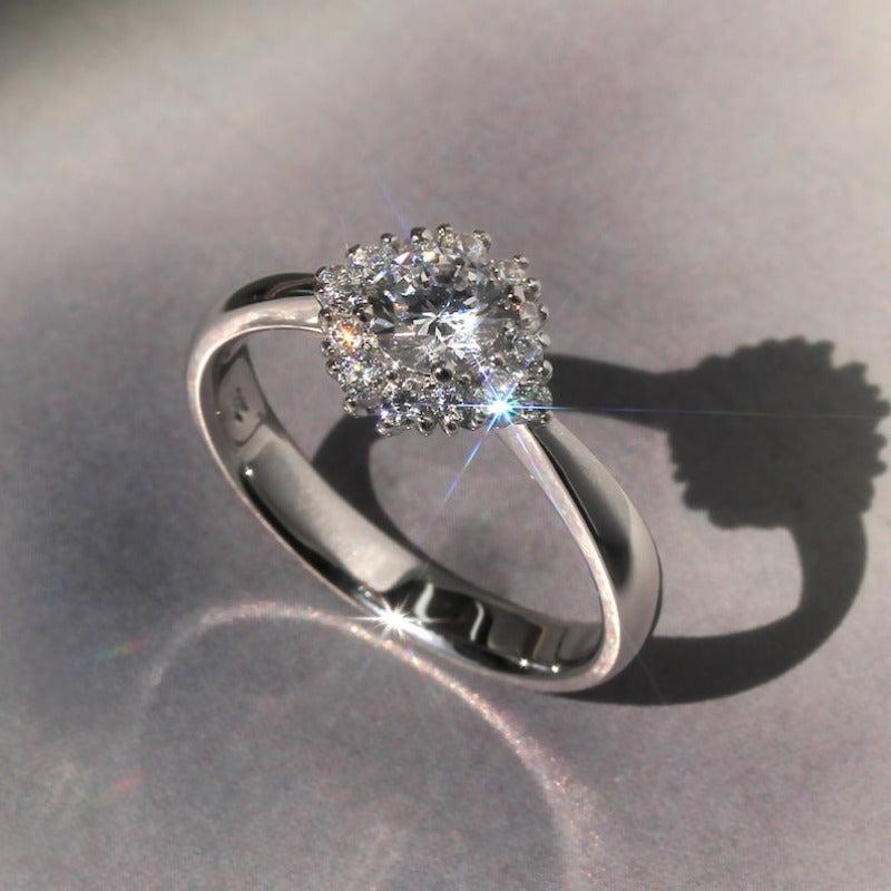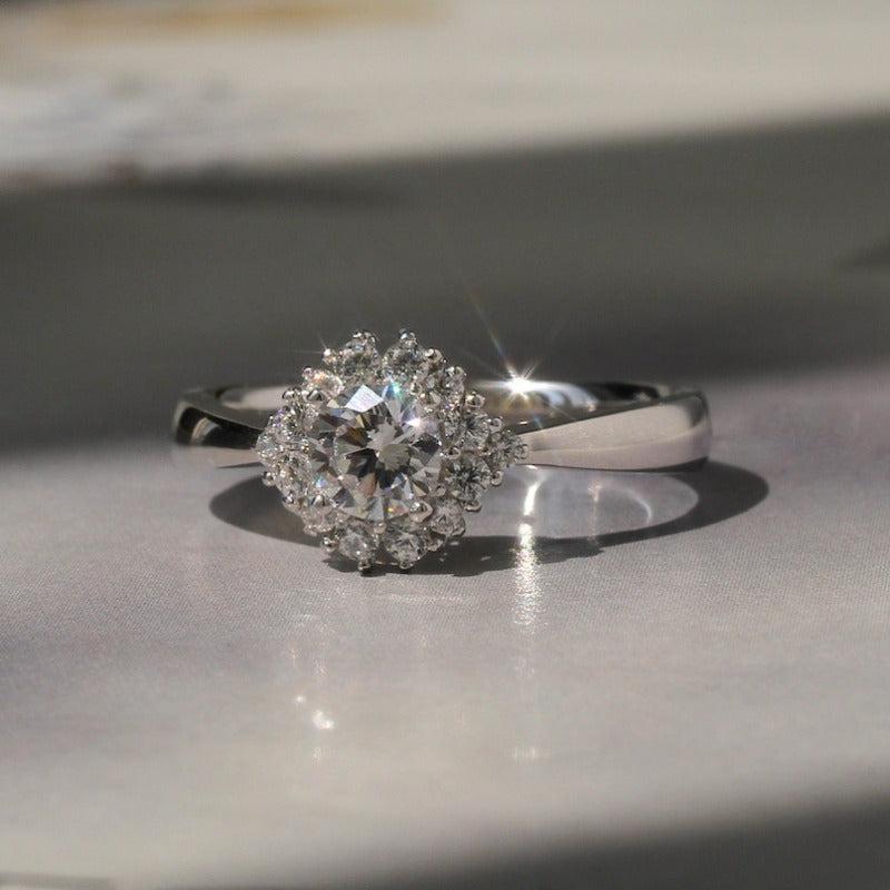 Silvery Wedding Ring Round Rhinestone Solitaire Engagement Promise Ring