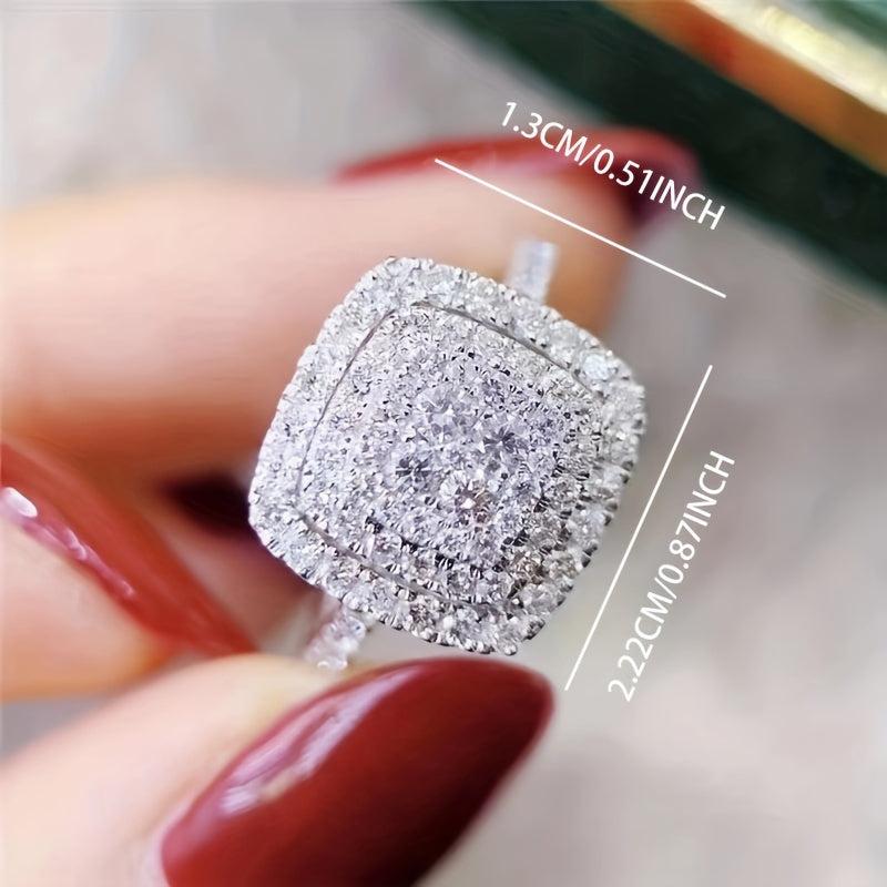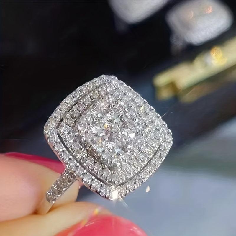 This stunning bridal ring features a full synthetic zirconia gemstone in a geometric design. Perfect for weddings and Valentine's Day.