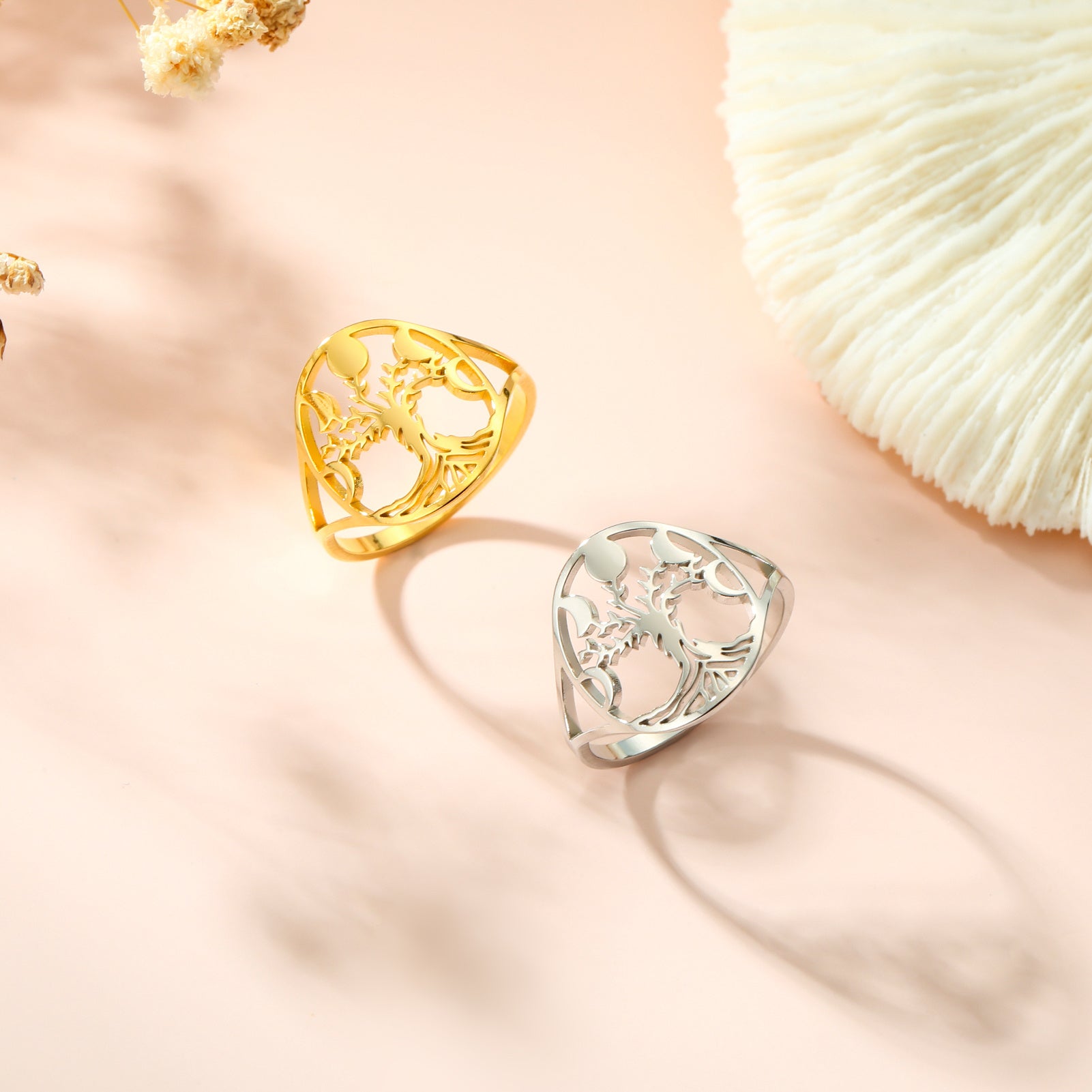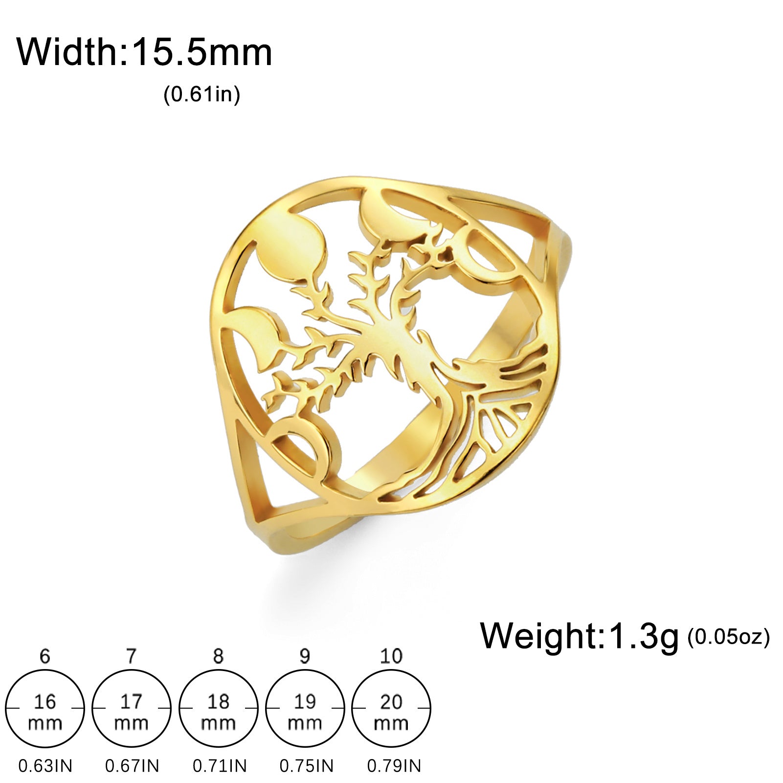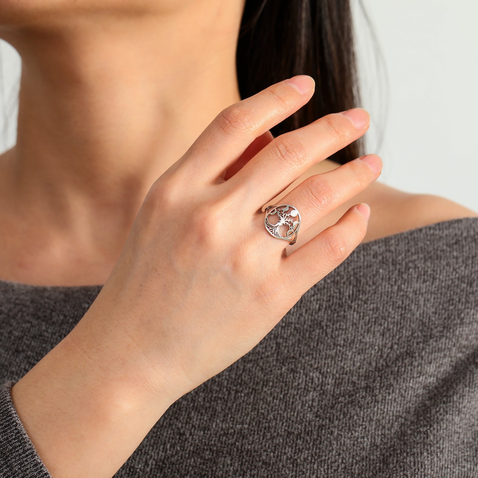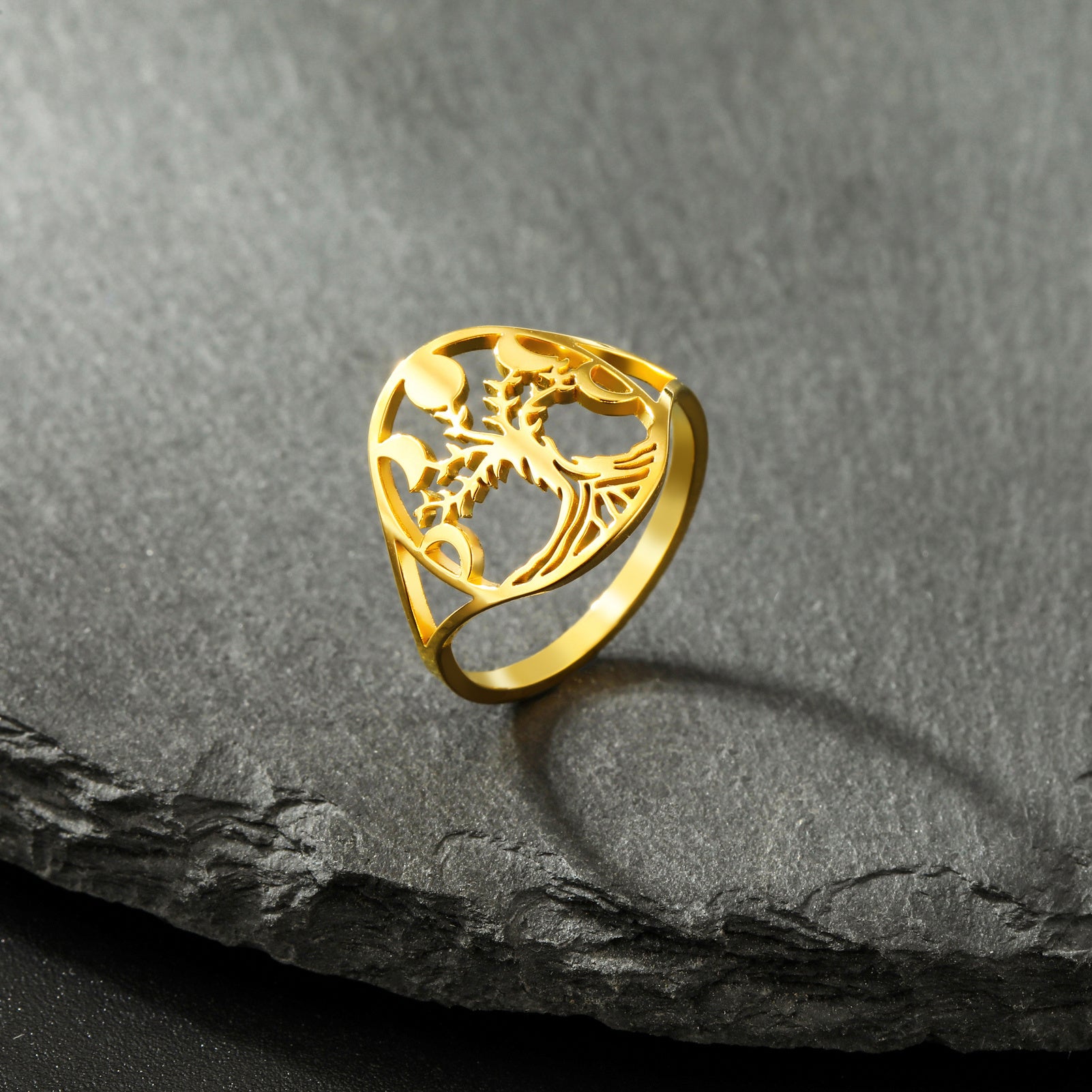 This Tree of Life stainless steel ring is perfect for those who love boho and hip hop styles. It's an ideal birthday gift that features moon phase details.