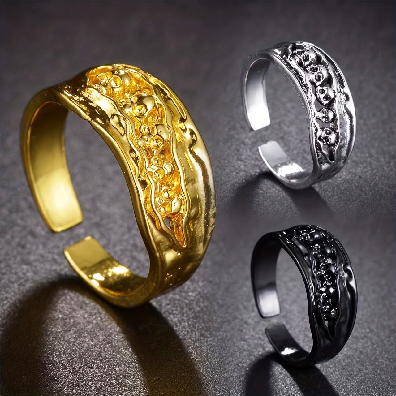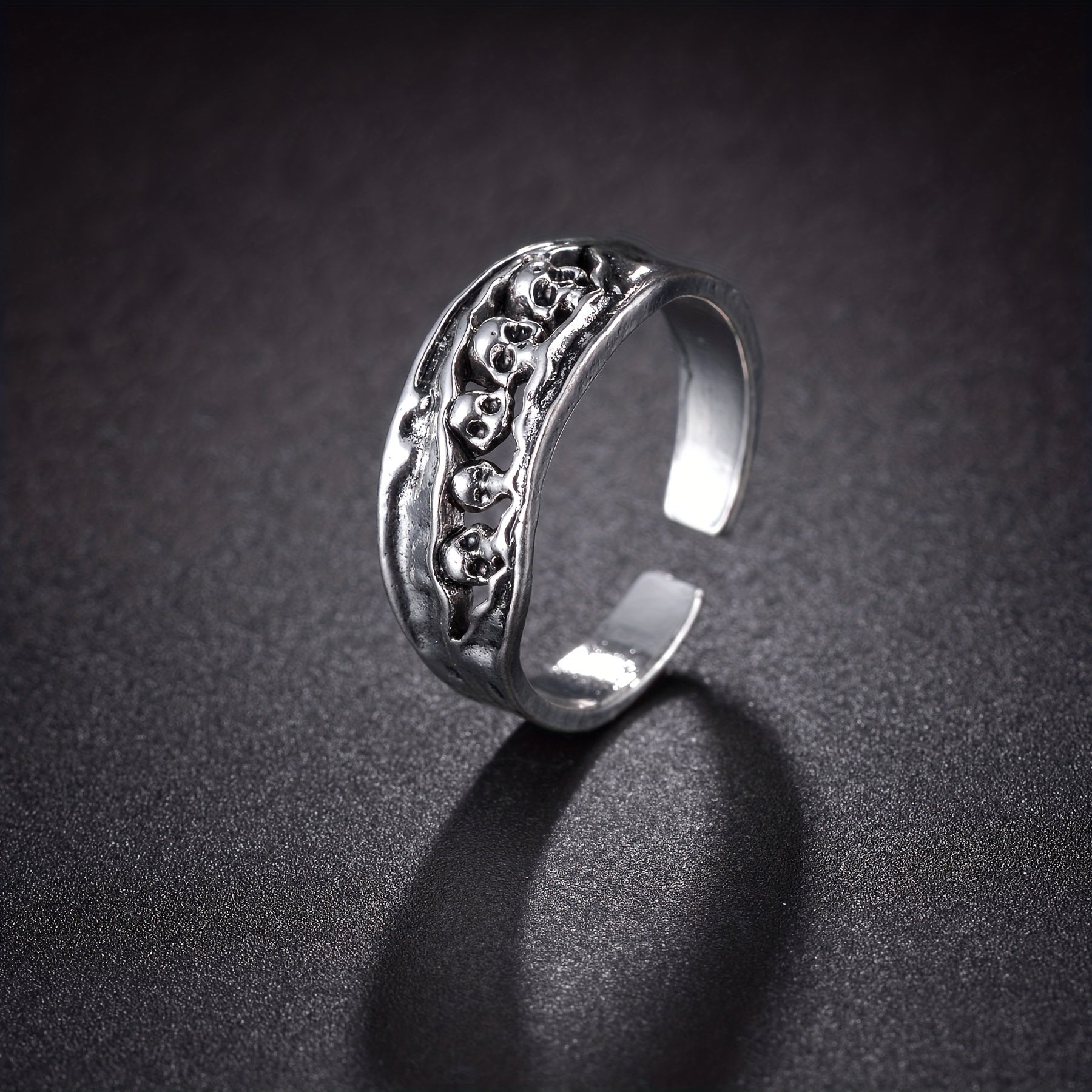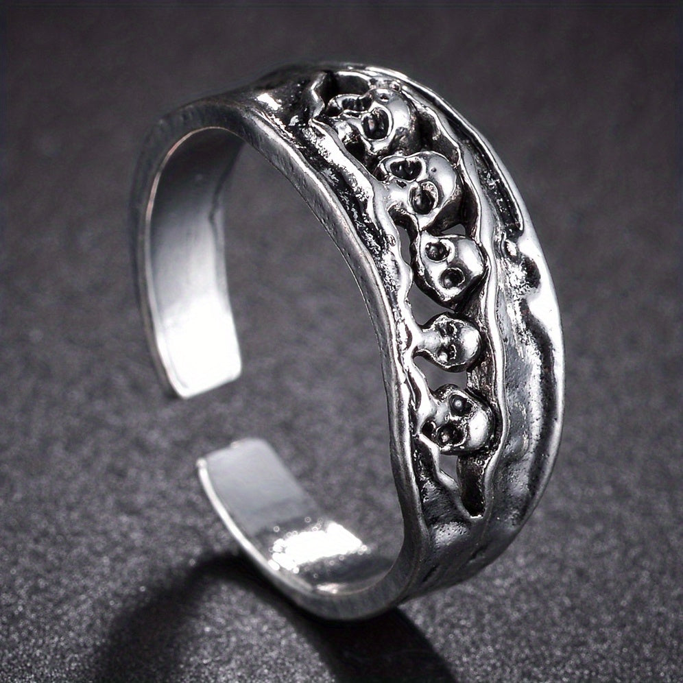 Add a stylish punk touch to your look with this cool skull open ring. Made of high-quality alloy, it's a perfect accessory for men who love street style.