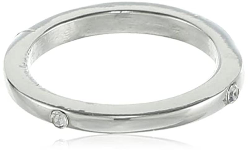 Stunning rhodium plated band ring featuring a flush set Austrian crystal for a touch of sparkle and elegance.