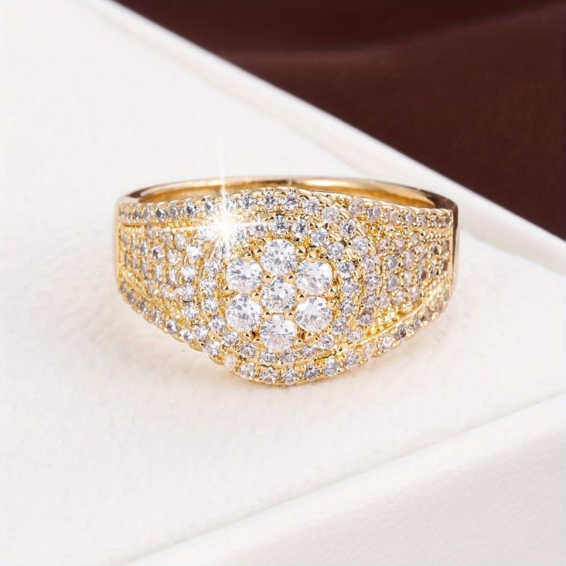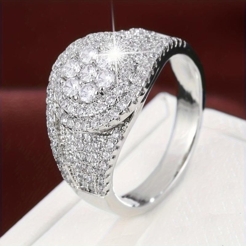 This synthetic zirconia ring features a small flower design, perfect for women with a unique sense of style.