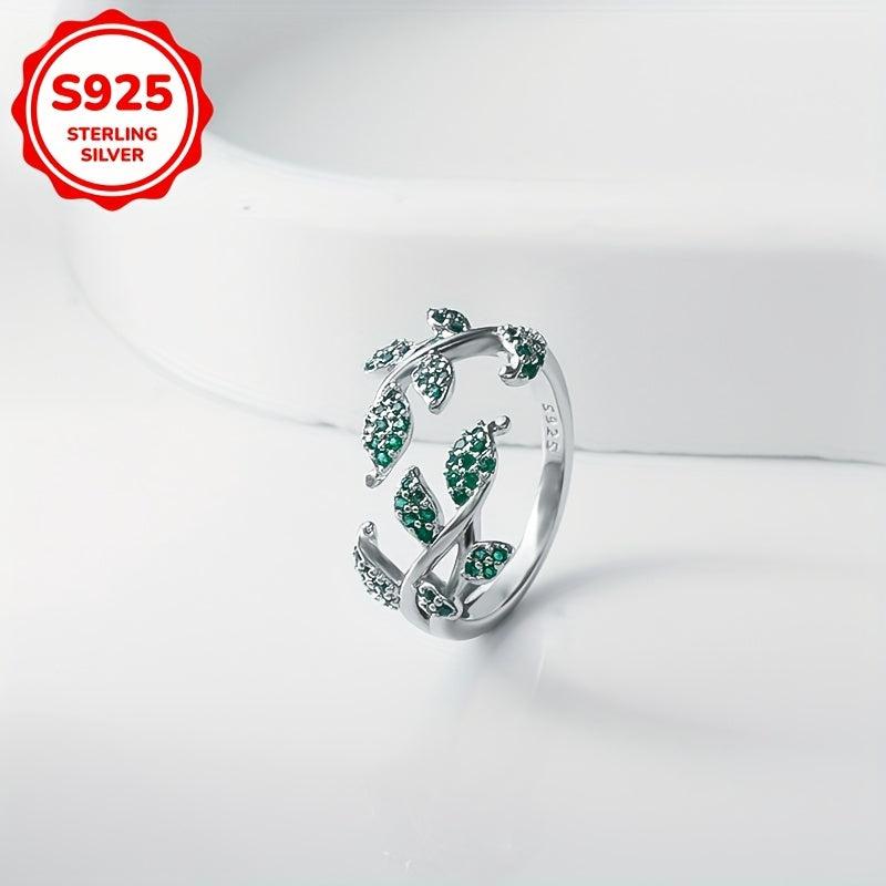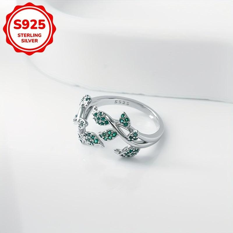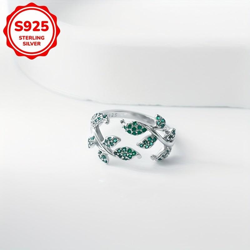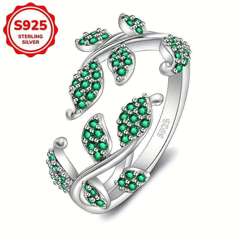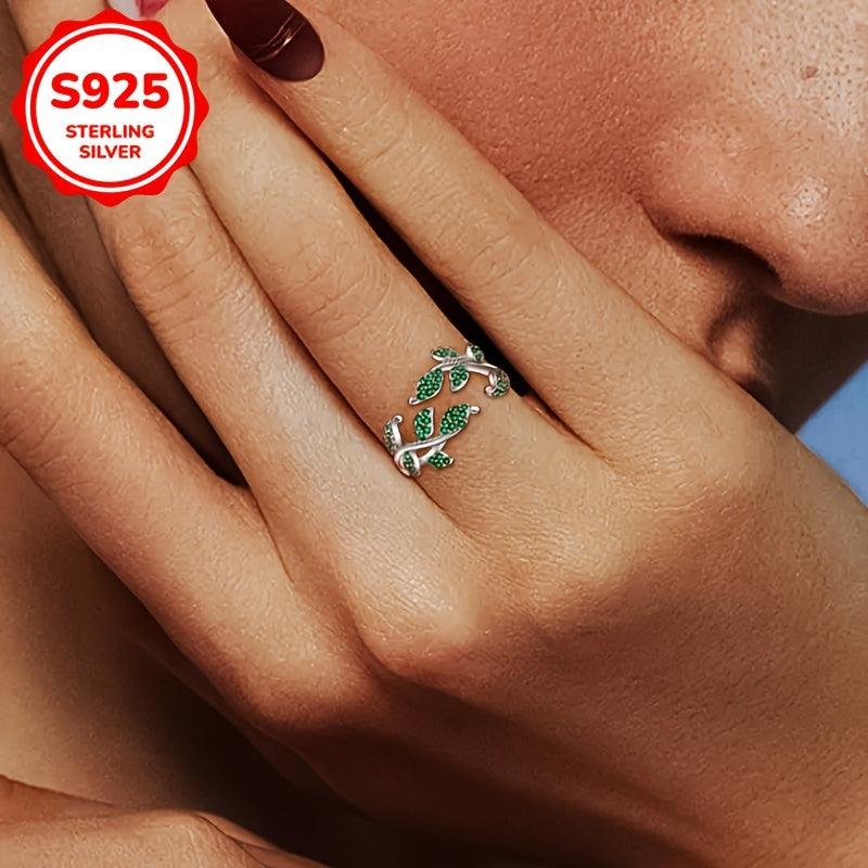 Adorn your finger with this small fresh buds leaf green zirconia ring. Crafted in S925 silver, this adjustable ring is perfect for beach vacations.