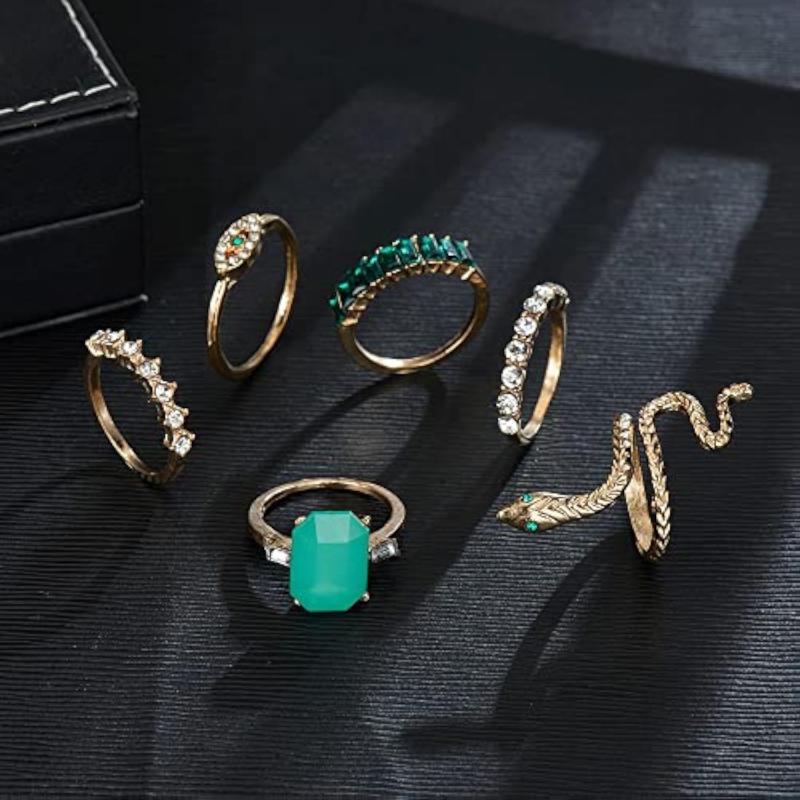 Add a touch of edgy style with this set of 6 snake plated rings. Perfect for stacking or wearing individually.