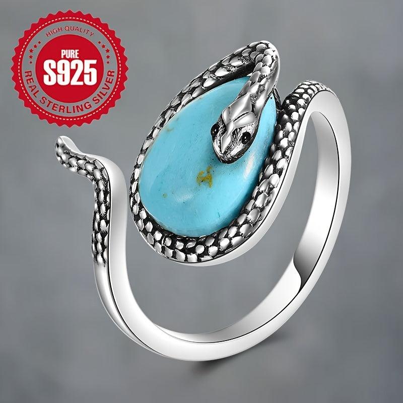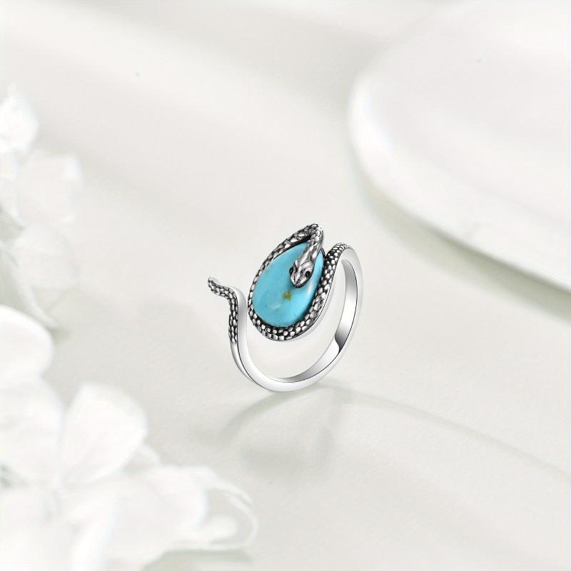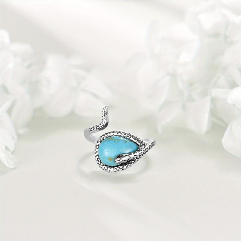 This stunning snake ring is made of 925 sterling silver and features artificial turquoise. It's a perfect gift for your wife, mother, or any woman who loves unique animal-themed jewelry.