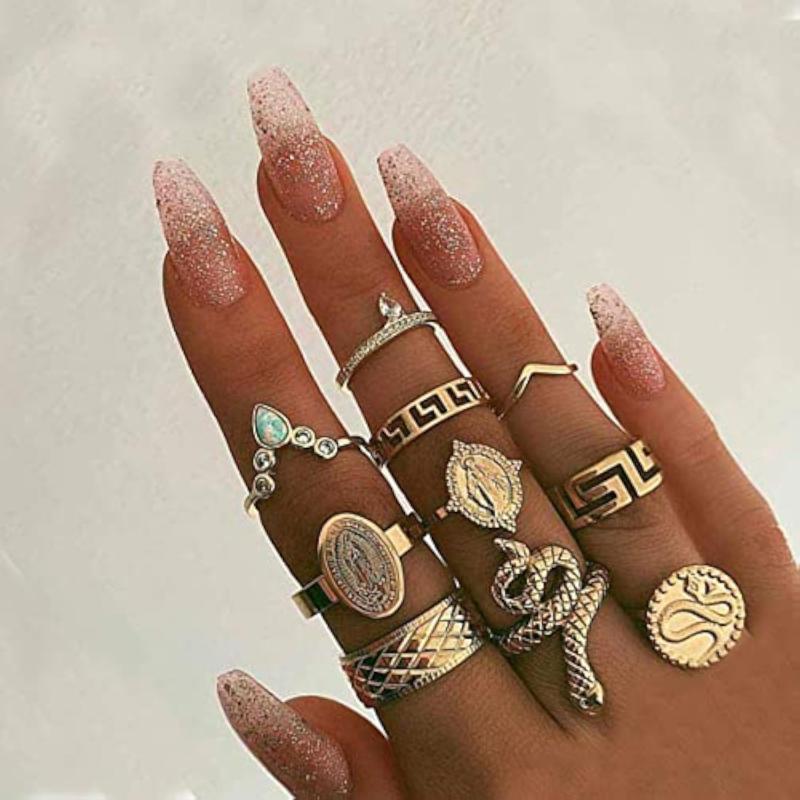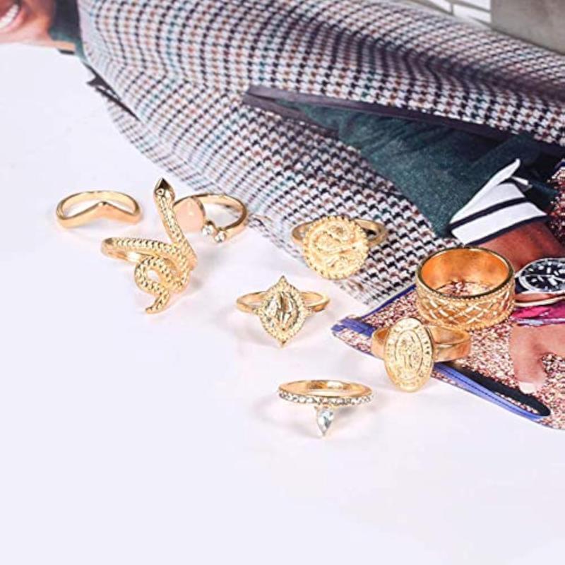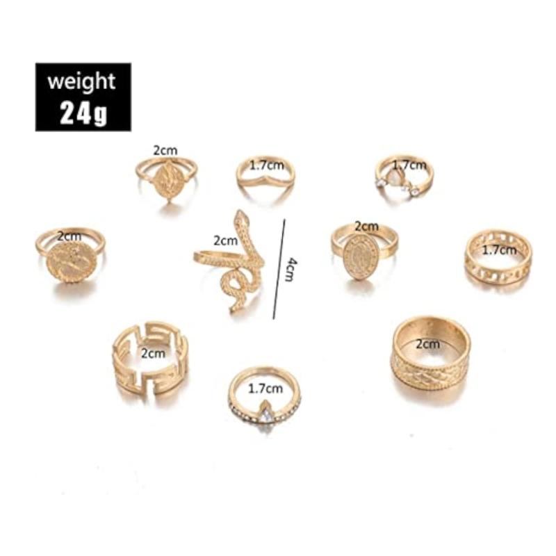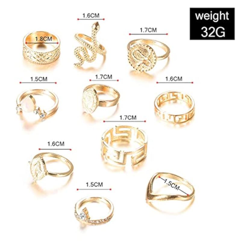 Elevate your style with this set of 10 plated snake-inspired stackable rings.