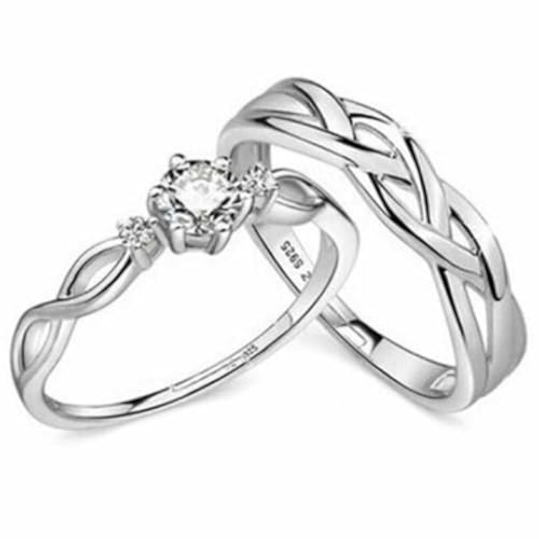 This stunning silver plated couple ring set features a round cut solitaire ring for a touch of elegance. The adjustable design ensures a perfect fit for both partners. A great choice for promise, bridal, or everyday wear.