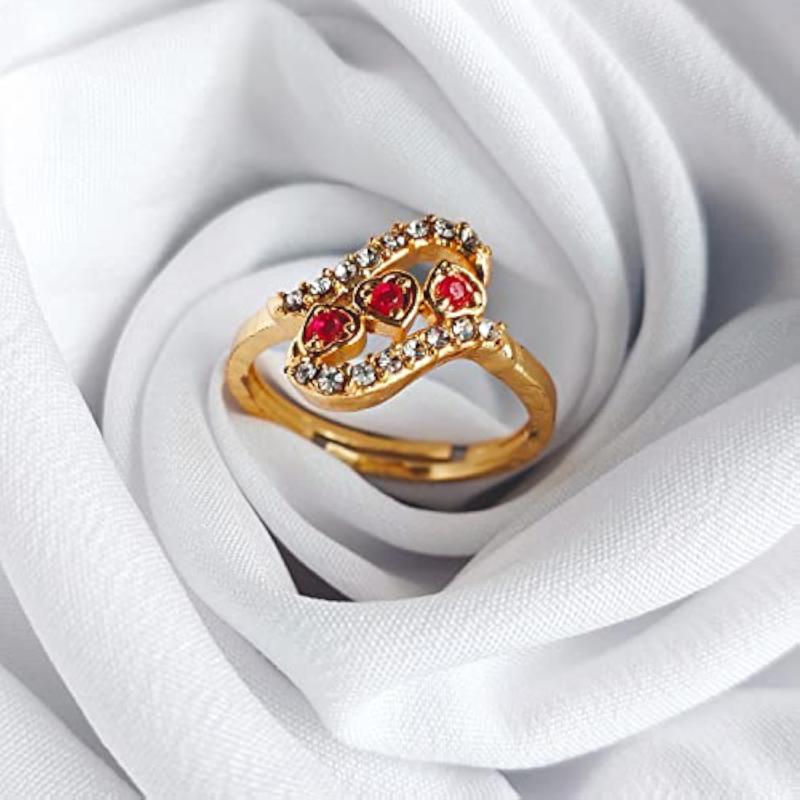 Elegant finger ring featuring a solitaire crystal and ruby stone. Perfect for adding a touch of sophistication.