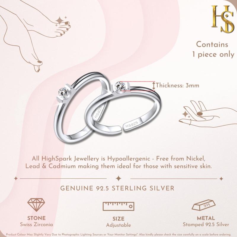 Enhance your style with these hypoallergenic diamond silver toe rings. Made from 92.5 sterling silver, these adjustable toe rings feature minimal and chic designs that are perfect for everyday wear.