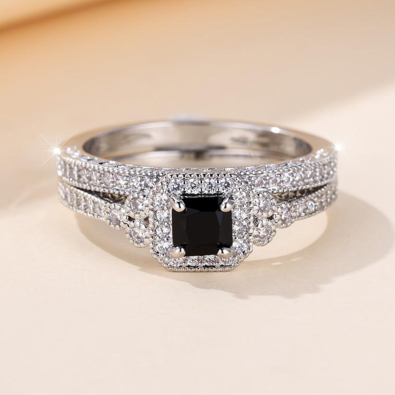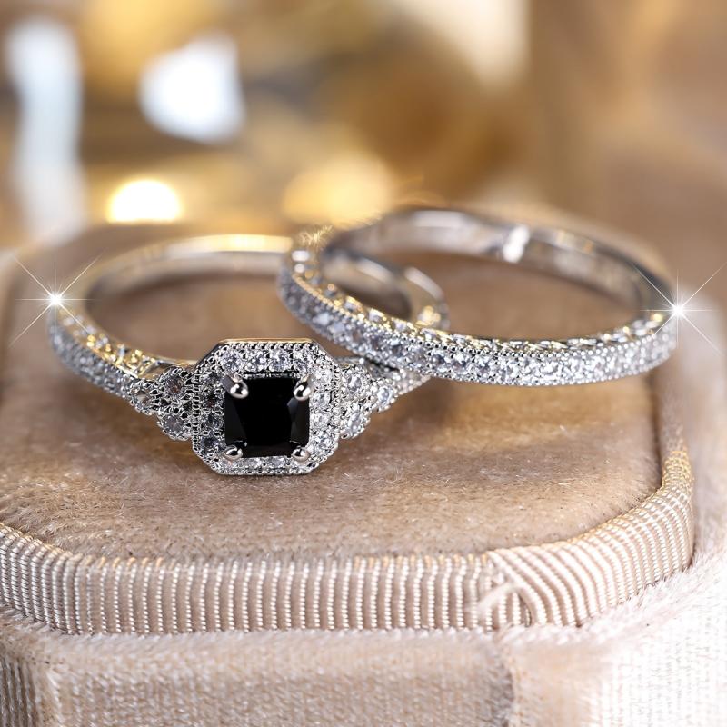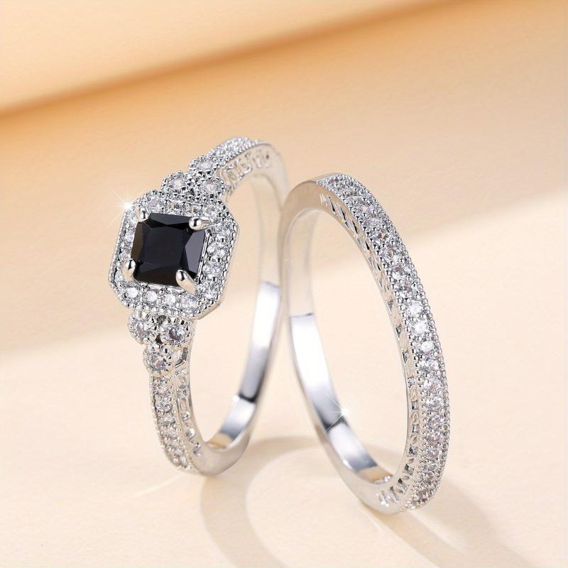 This stunning 2-piece micro inset zirconia set is perfect for weddings, bridesmaids, or as a couple ring. It sparkles beautifully and makes a great gift for any special occasion.