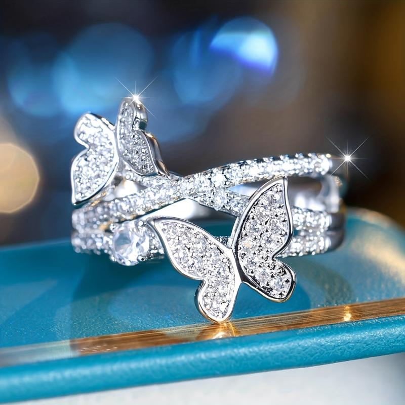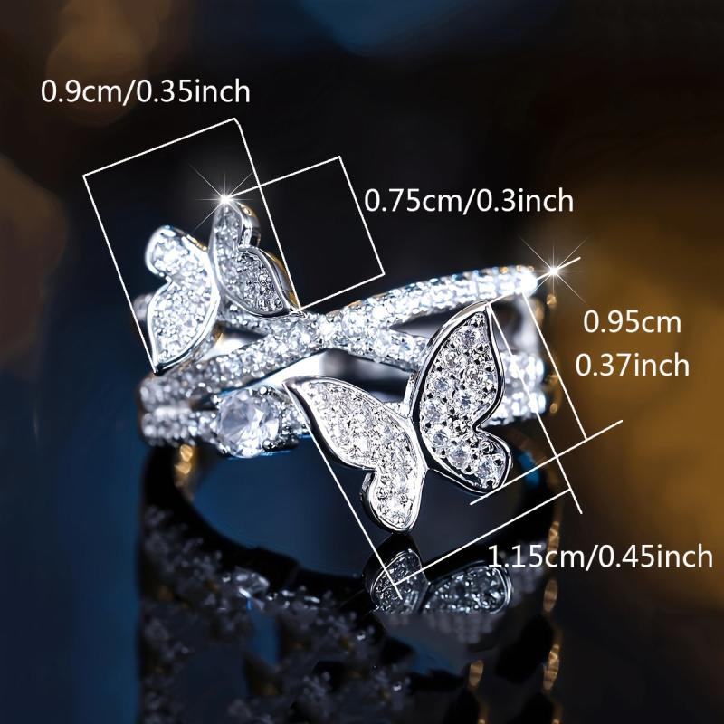 This wide ring features a fine sparkly Synthetic Zirconia butterfly design, perfect for adding a touch of sweetness to your outfit. The thread feel adds a unique and creative look to this piece of jewelry.
