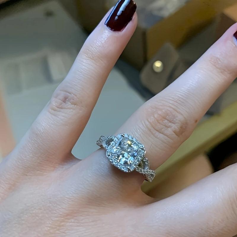 This ring features a square synthetic zirconia, making it perfect for engagements, weddings, and daily wear. An ideal gift for women.