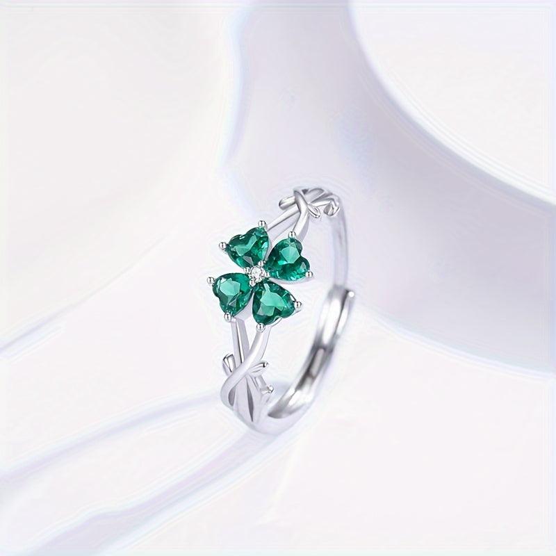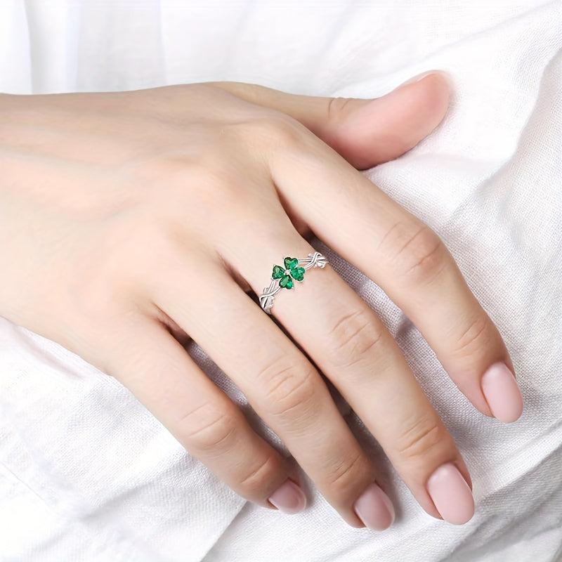 Show off your luck with this fashionable ring featuring a four-leaf clover design. Made of low allergy S925 silver with a square cut zirconia, this ring is perfect for any occasion.