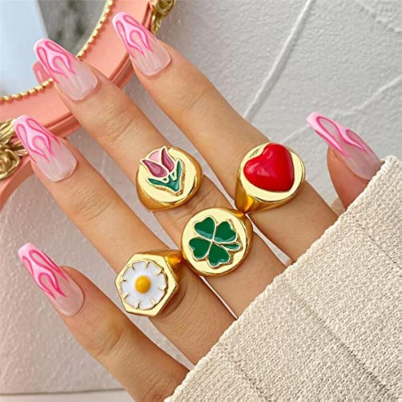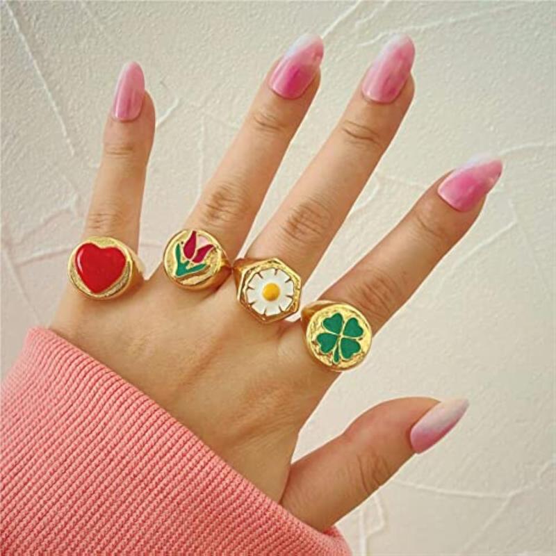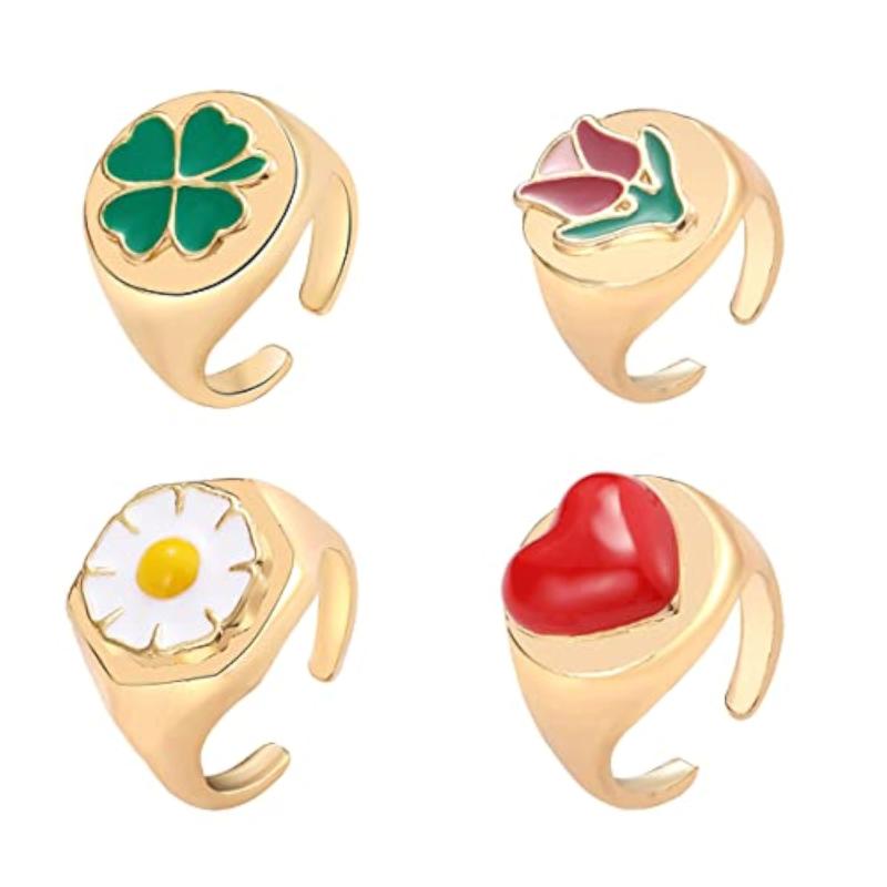 Elevate your ring game with this stunning set of stackable rings. Each ring features a unique design with crystal accents and a gold finish, perfect for stacking together or wearing separately.