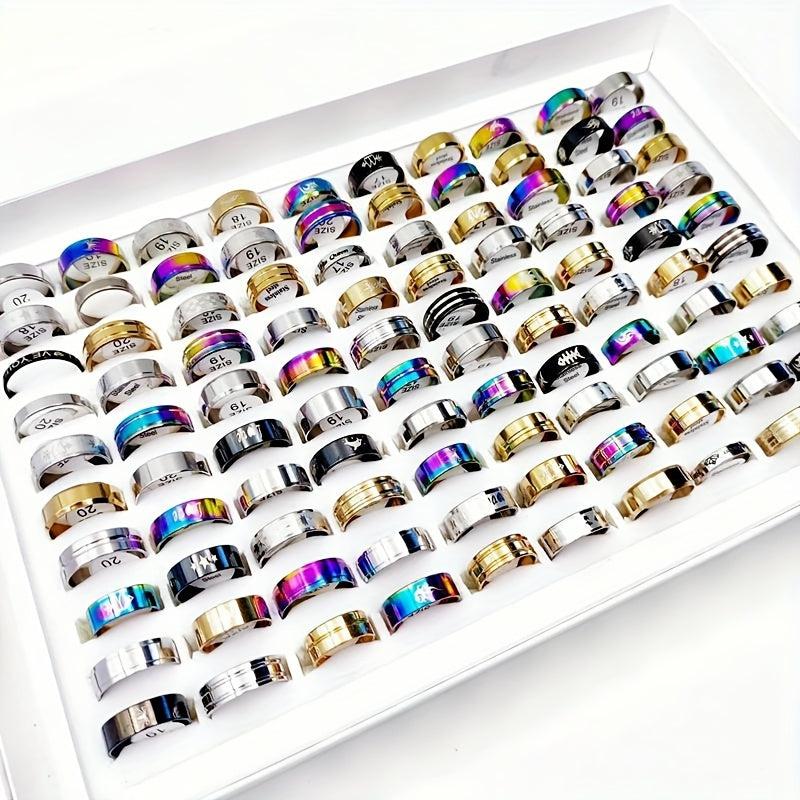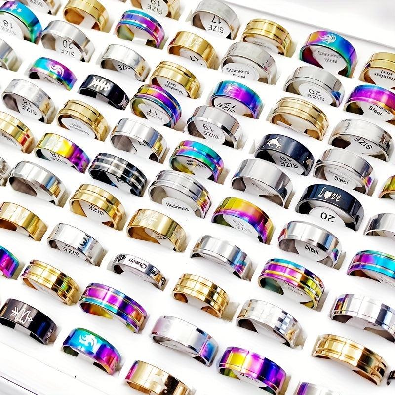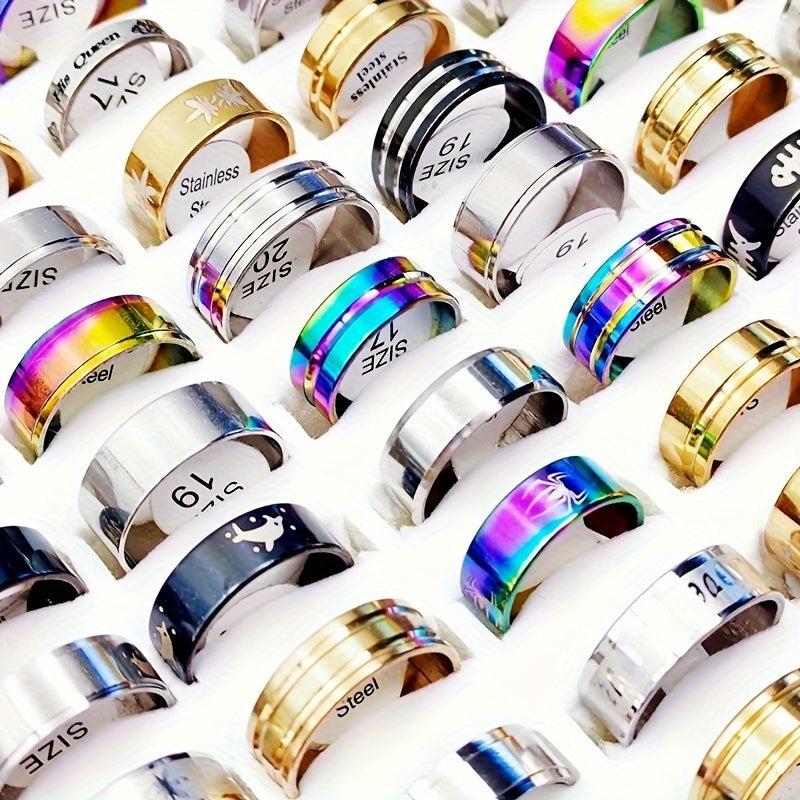 Elevate your style with this set of 5 stainless steel stackable rings featuring assorted designs. Perfect for mixing and matching, these rings are durable and stylish.