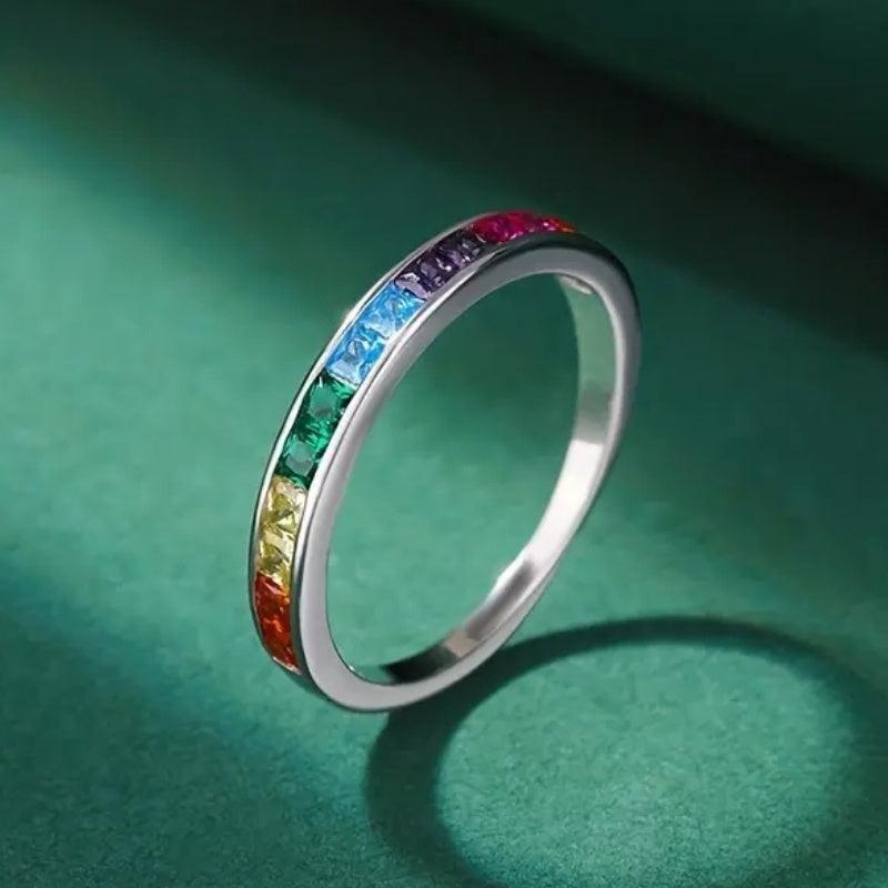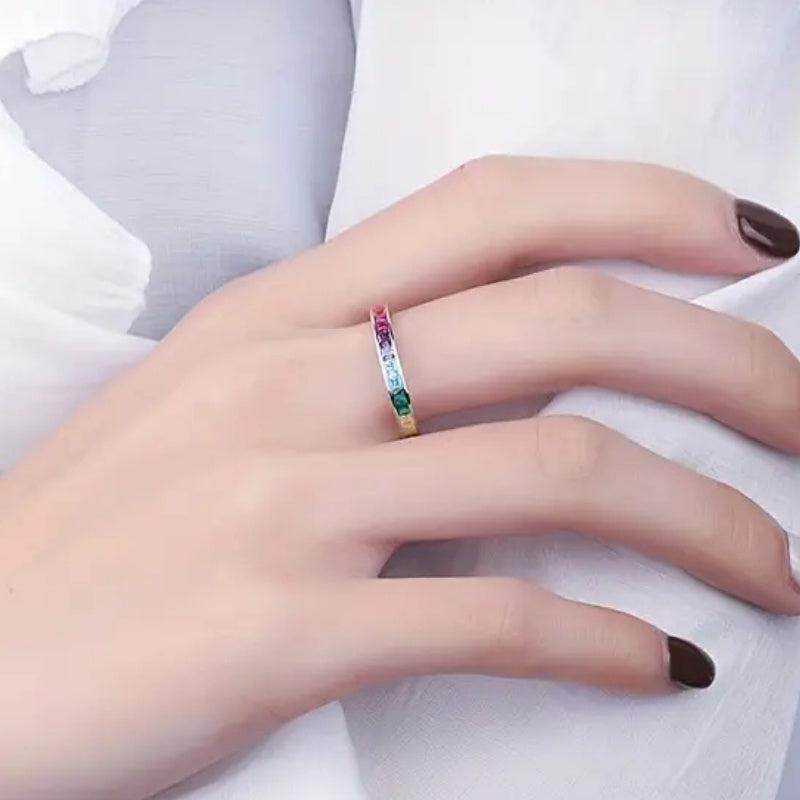 Elegant and delicate thin rings featuring synthetic zirconia birthstones. Perfect for stacking and adding a pop of color to your outfits.