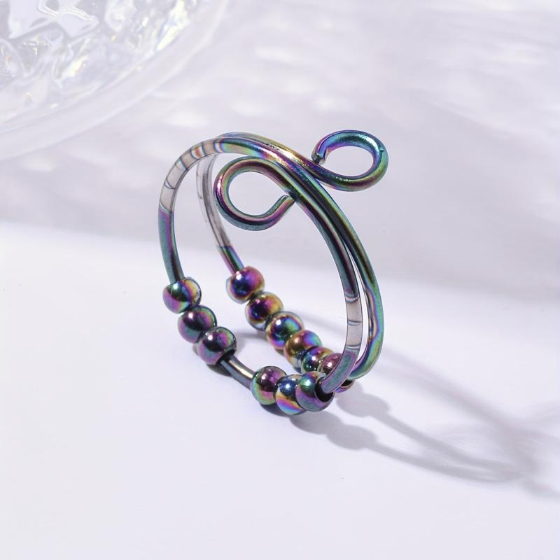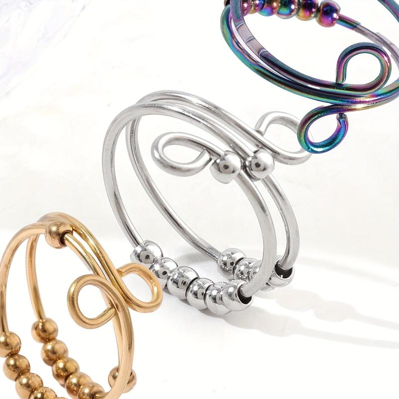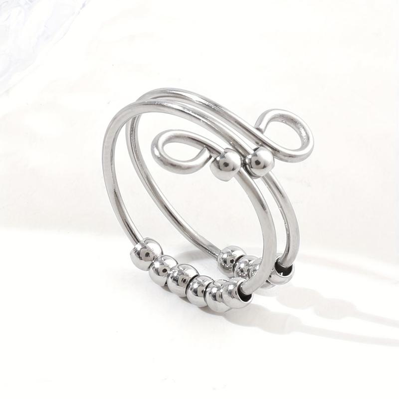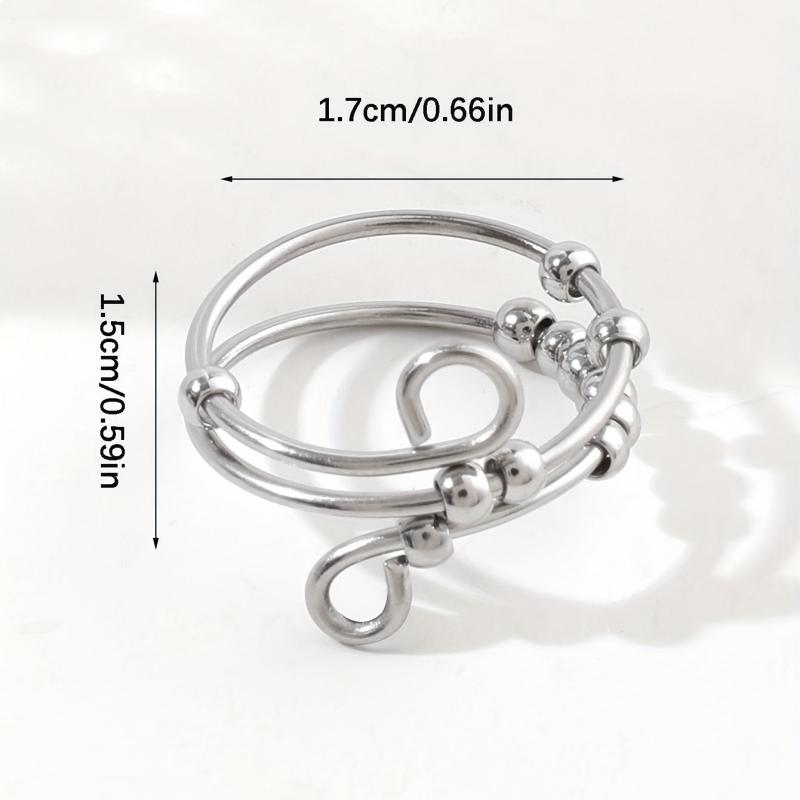 This stainless steel anxiety ring features spinning beads and comes in various styles to match your daily outfits. It is a stylish and functional accessory designed to help you manage stress and anxiety.