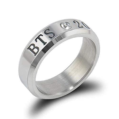 This stainless steel ring features a sleek design with BTS logo, suitable for fans. It is durable and stylish, making it ideal for everyday wear.