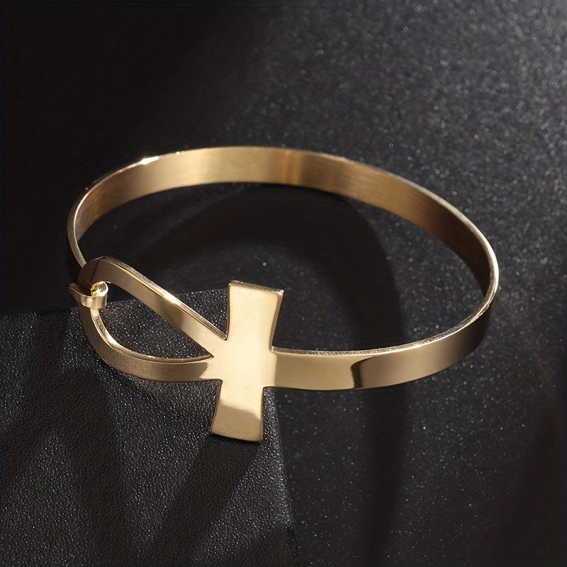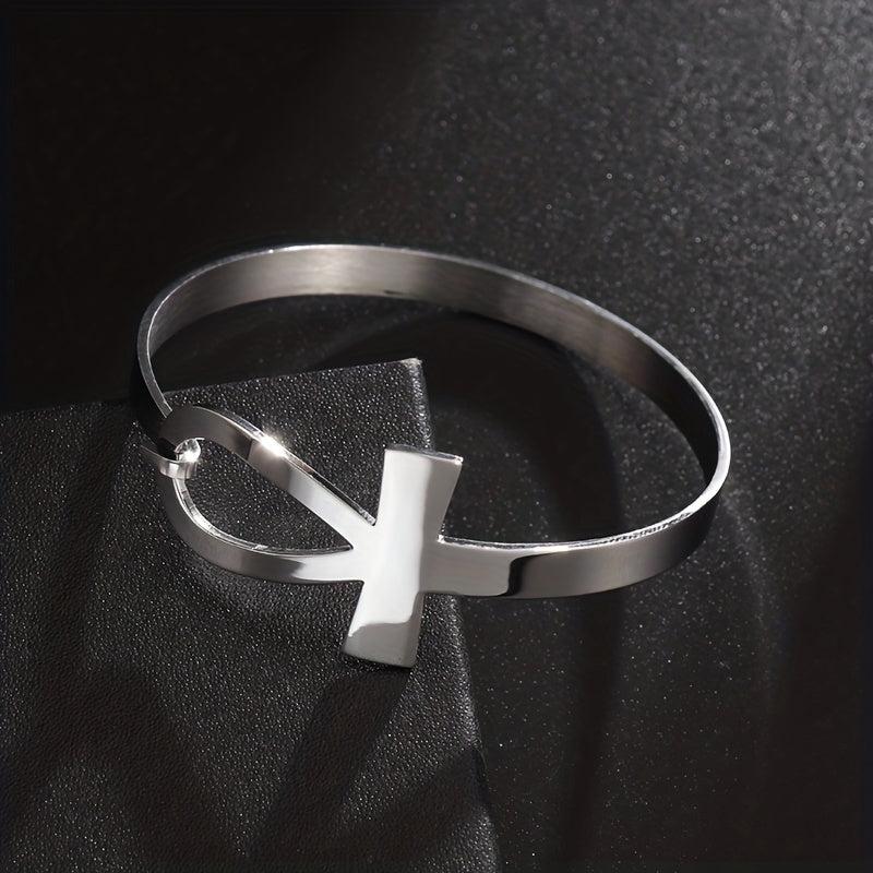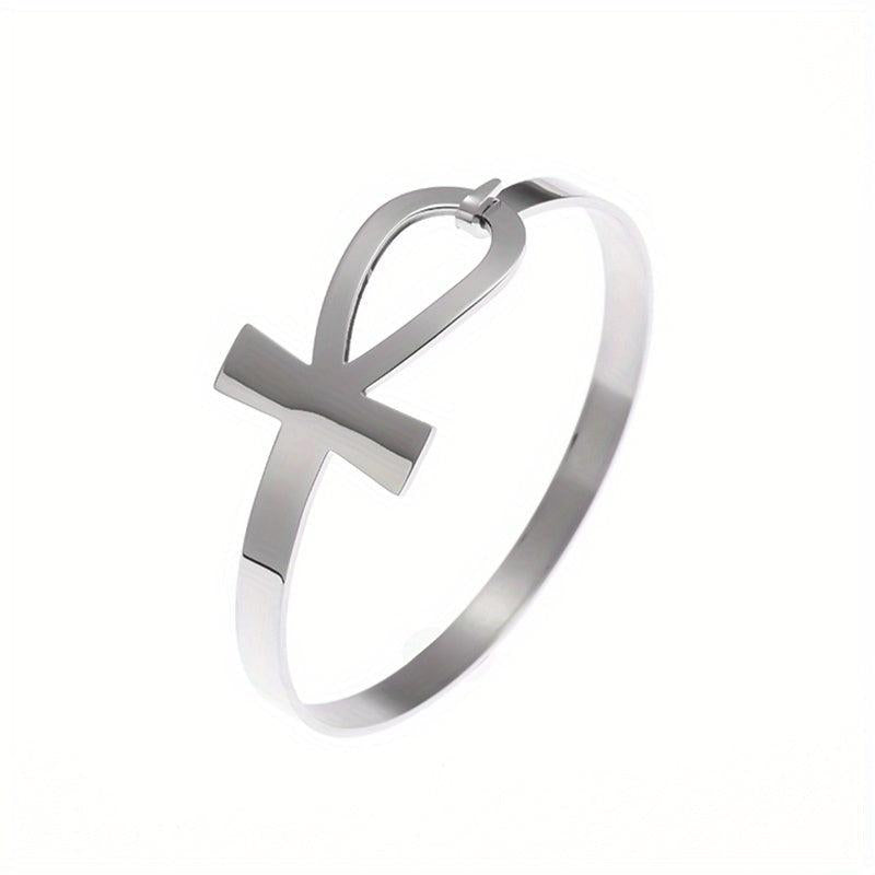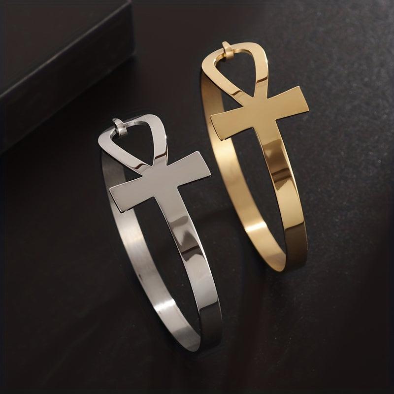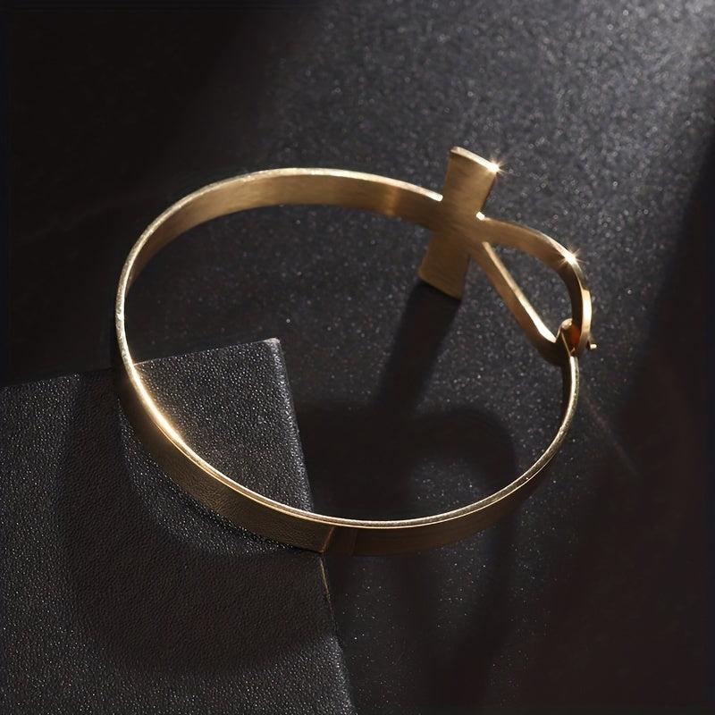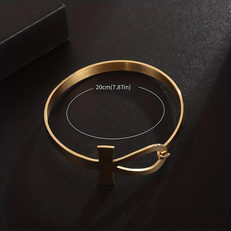 Elegant stainless steel bangle featuring a classic cross design, perfect for parties or casual wear. Ideal jewelry gift for men and women.