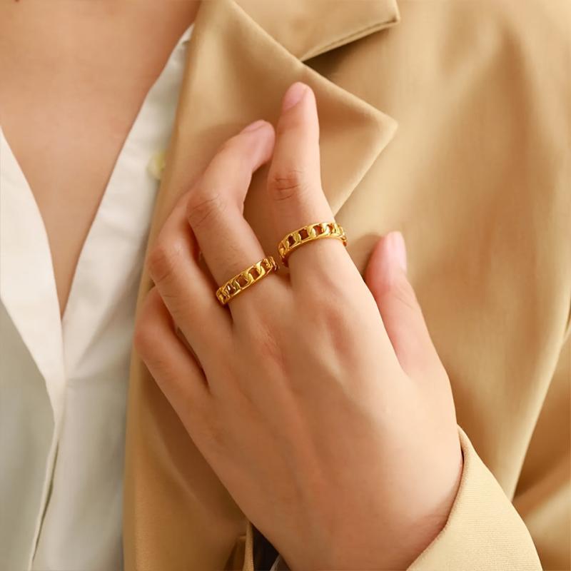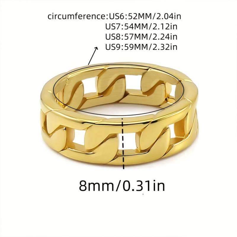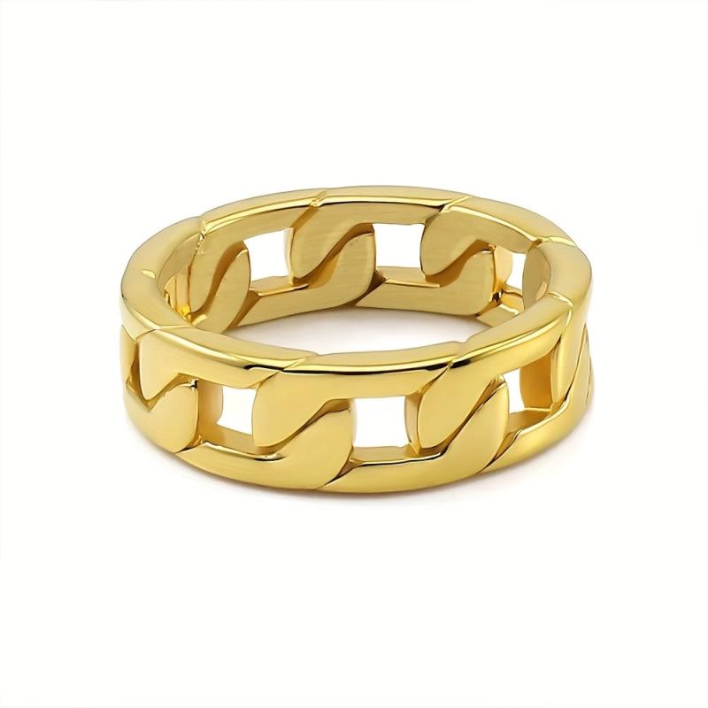 Get this minimalist and durable golden tone ring that is perfect for both men and women. Made of high-quality stainless steel, this Cuban chain ring adds a touch of style to any outfit.