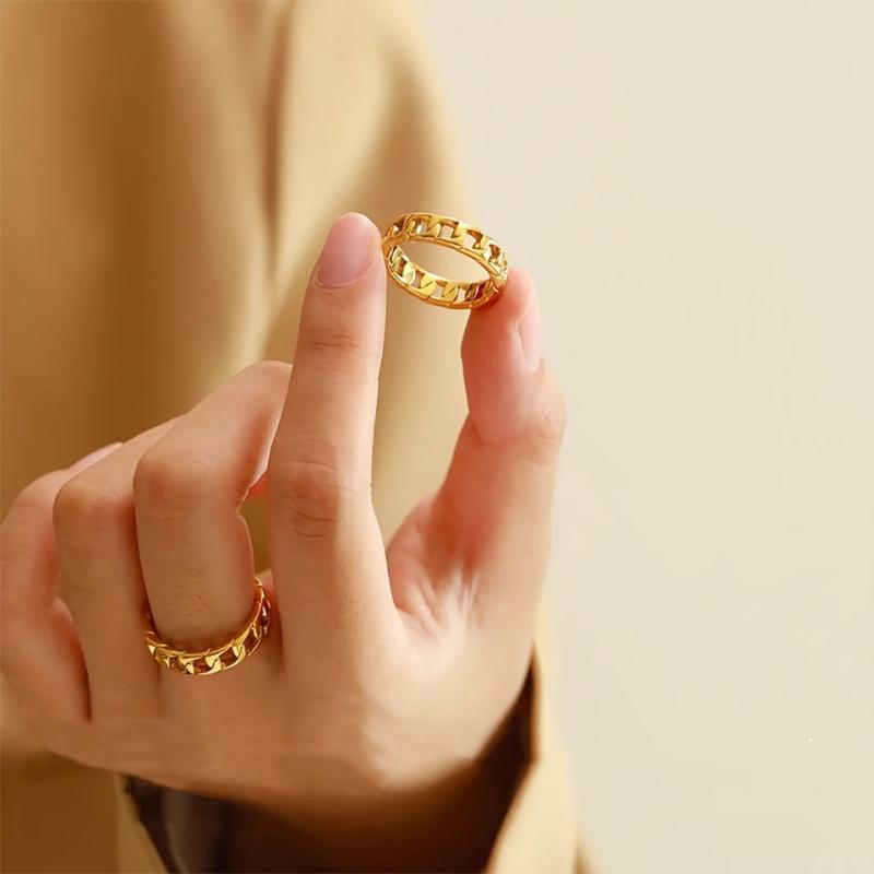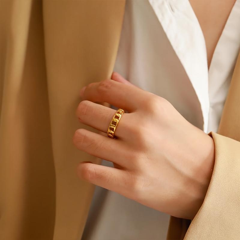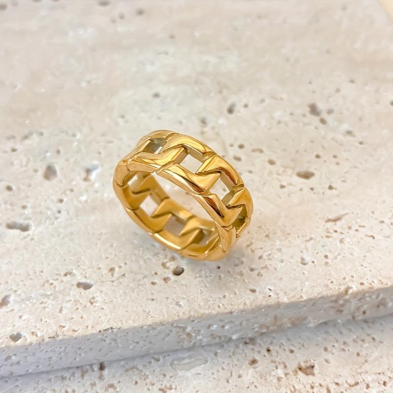 Elevate your casual attire with this intricate hollow open ring featuring a Cuban link chain design. Made of stainless steel, this adjustable ring is perfect for everyday wear or as a thoughtful gift for a loved one.